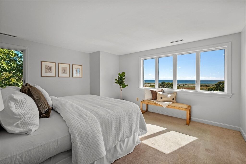 Perched at the highest point in the complex, this end unit offers sweeping views of Good Harbor Beach. This 3-bedroom, 3-full-bath townhouse—with its own garage—embodies the best of coastal living. The entire complex has recently undergone a full renovation, including new roads, landscaping, roofs, windows, sliders, doors, trim, along with a newly painted interior throughout. The lower level features a full bath, while the main level boasts a spacious dining area that flows seamlessly into the living room and kitchen—each with access to a private deck to take in the views. Among the most desirable locations and largest layouts, offered at a price that invites your personal updates. There is easy access to Good Harbor Beach via a protected walkway on Thacher Road. Open houses Sat/Sun 2:00-3:30