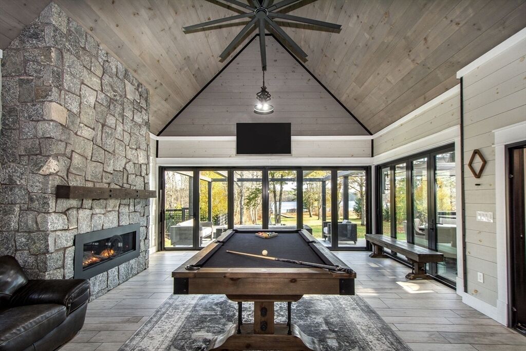 Sampson's Pond waterfront retreat, created with remarkable attention to detail! From the serene water views, radiant heating throughout the first floor, gorgeous kitchen with honed granite, island, smart appliances, pantry, and dining area, to the large warm & inviting family room with its stone fireplace, this home offers livable luxury. Two bedroom suites, two bedrooms w/ adjoining bath, plus separate 1 bedroom ADU, and multiple entertaining areas, this home accommodates a crowd. Interior walls are insulated & soundproofed, adding to its relaxed tone. Upstairs gym, sauna, & full bath. Indoor/outdoor living areas blend seamlessly w/ the fireplaced billiard/dining room panoramic doors opening completely onto the two tiered stone patio w/ granite outdoor kitchen, pergola, and seating areas, overlooking the water and landscaped fenced yard. Sit by the secluded fire pit, or enjoy the fully recreational pond from your private dock. Car collectors will love garaged space for 15+.
