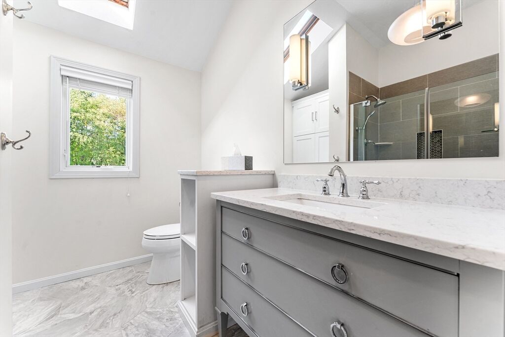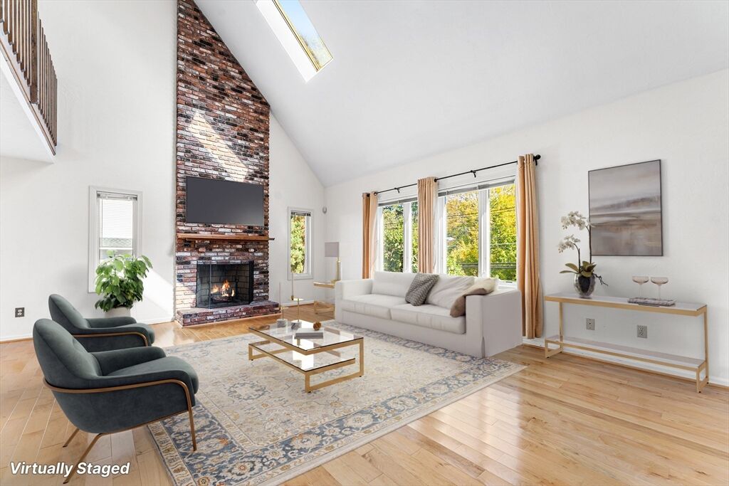You'll fall in love with this contemporary four-bedroom residence nestled in the highly desirable Northborough school district. Inside, the home boasts dramatic architectural features including a striking floor-to-ceiling fireplace and abundant skylights that fill the space with natural light. The primary suite is a true retreat, featuring its own private full bath and an exclusive balcony, all complemented by spacious closets throughout the home. The property also offers a level backyard perfect for outdoor enjoyment, and its prime central location provides easy access for commuters via I-495, I-290, and the Mass Pike (I-90) to both Boston and Worcester.