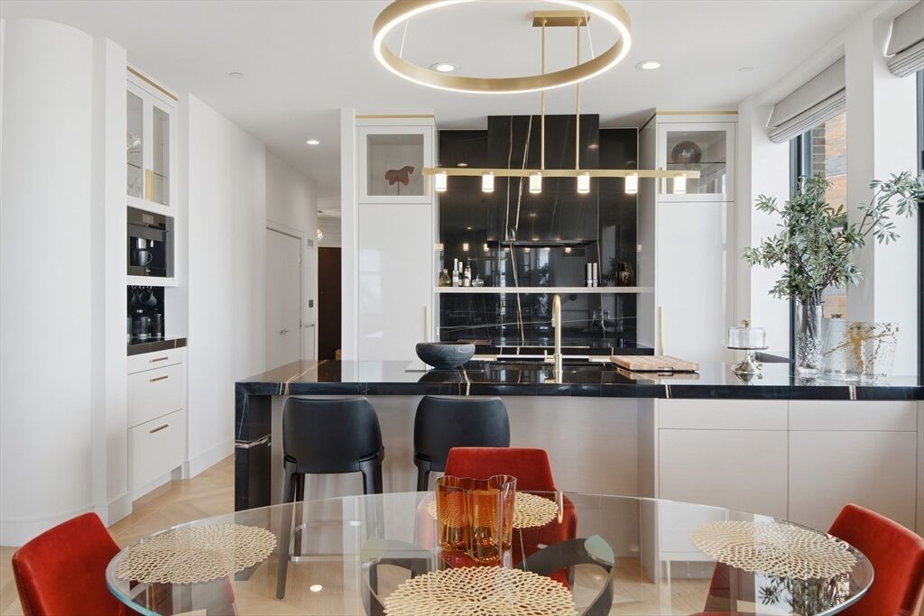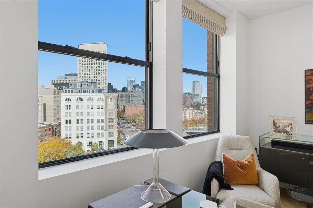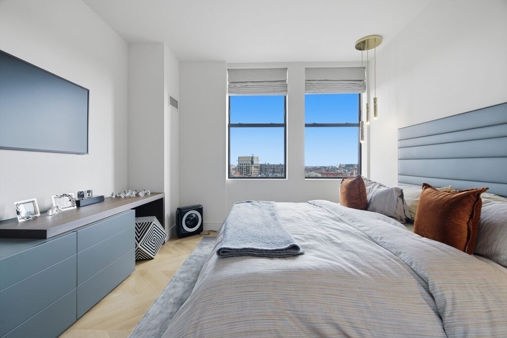 A masterpiece in the sky. This corner penthouse in a boutique elevator building offers sweeping downtown skyline and South End brownstone views. Completely reimagined in 2023, the residence blends refined luxury with modern comfort. Walls of oversized windows bathe the home in natural light, highlighting 10-ft ceilings and wide-plank white oak floors. The chef’s kitchen showcases designer cabinetry, Sub-Zero refrigeration, a Miele induction cooktop and oven, bespoke wine display, and touchless faucets. A book matched marble fireplace surround with bench seating anchors the living space. Spa-inspired baths feature a Thermosol steam shower, soaking tub, heated floors, and towel bars. Smart home upgrades include Ecobee thermostats, Lutron Roman shades, and full security system. California Closets provide tailored storage, and a new AC/heat pump ensures year-round comfort. With custom chandeliers and Jeffries silk wallcoverings, this penthouse defines modern South End perfection.