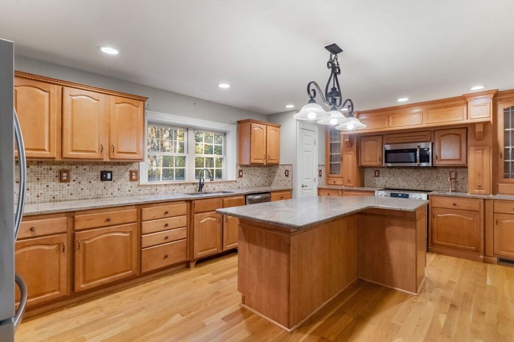 Welcome to 29 Belair Drive, a beautifully maintained 4-bedroom, 2.5-bath Colonial located in the sought-after Belair Estates neighborhood. The main level features a spacious open floor plan ideal for entertaining, including a custom kitchen with granite countertops, stainless steel appliances, and a large center island. A slider off the dining area brings you to a private backyard with an expansive deck, fish pond with waterfall, and storage shed. Upstairs, the impressive primary suite offers a walk-in closet and an ensuite bath with a soaking tub, double shower, and custom dual-sink vanity. Two additional bedrooms on this level include walk-in closets, plus a fourth bedroom. The finished portion of the lower level provides an excellent family room, playroom, or home office. The remaining unfinished area is already framed and ready for future expansion. Truly move-in ready — don’t miss this opportunity!
