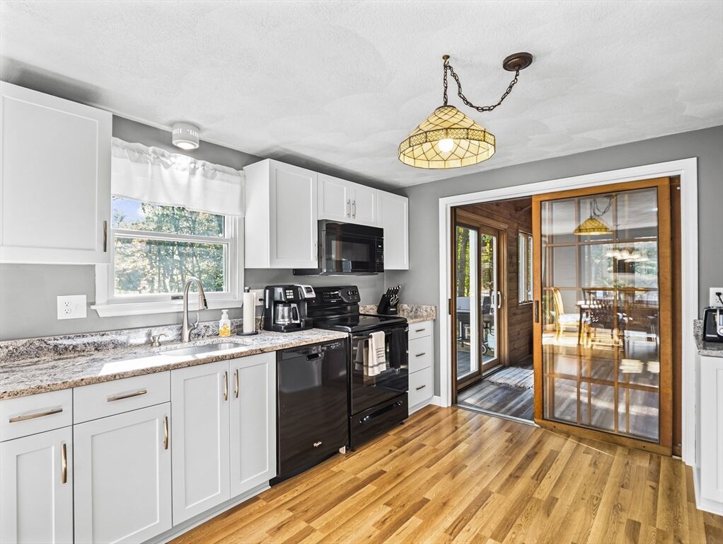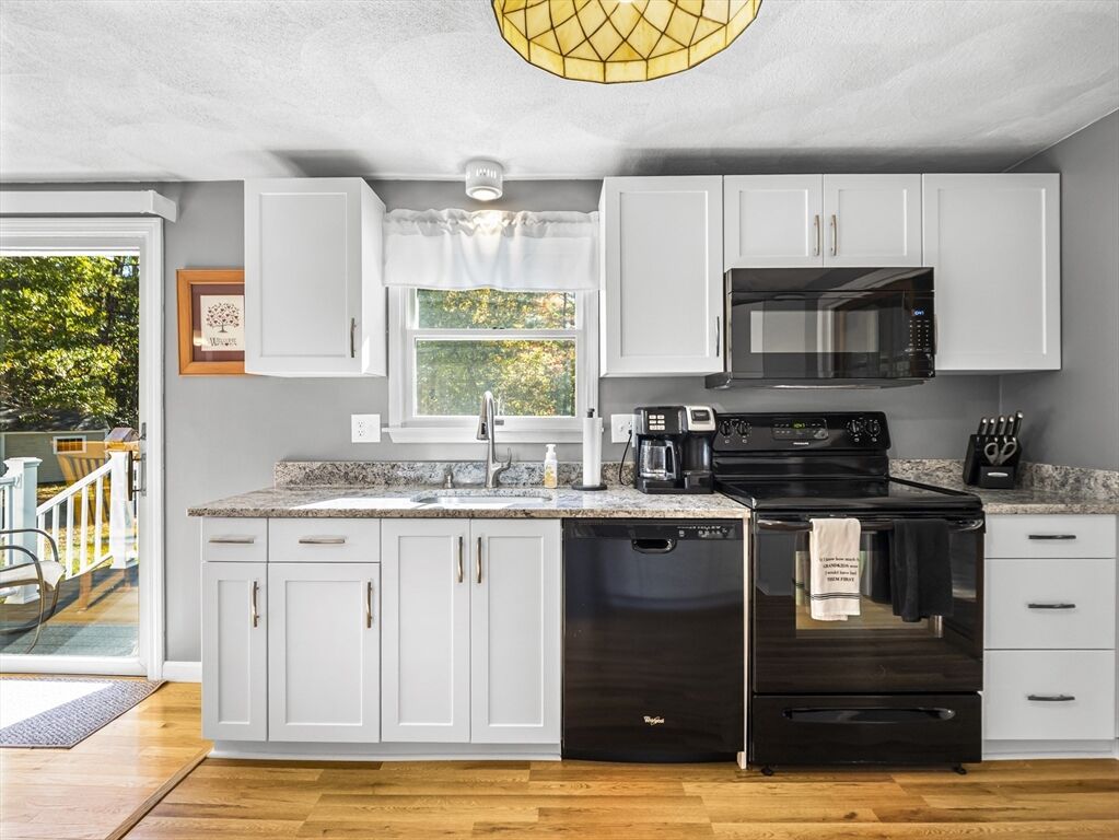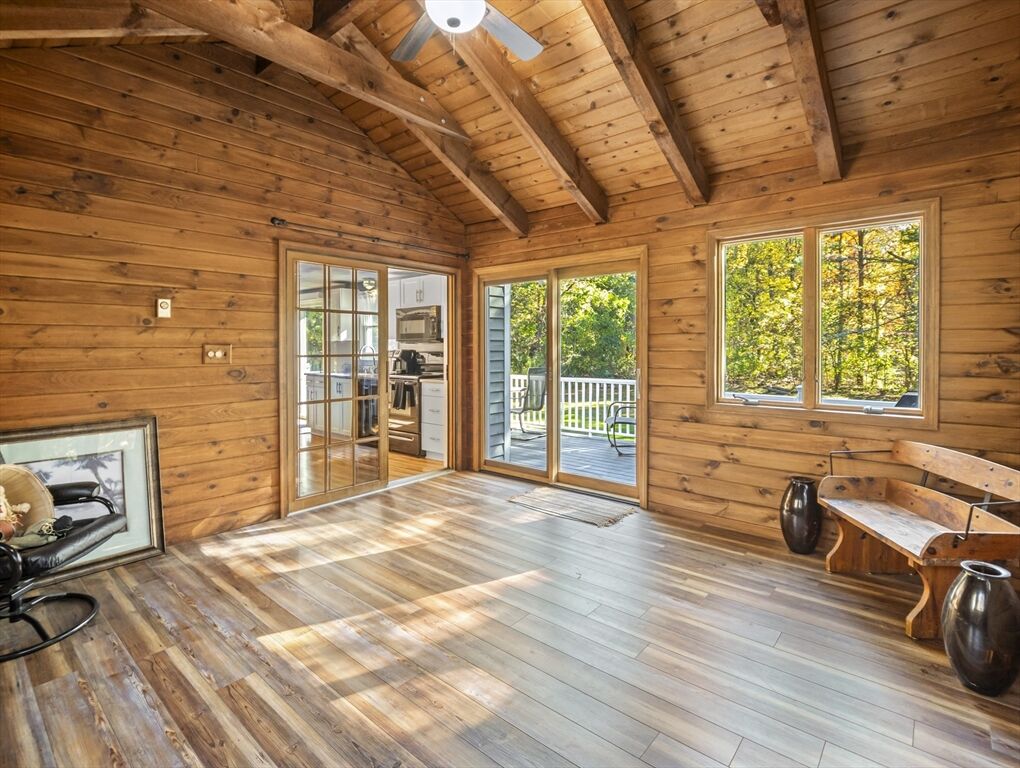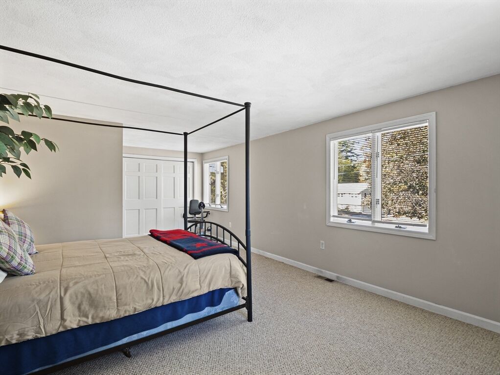 Welcome home This inviting home offers about 2400 square feet of comfortable living space, starting with a bright new eat-in kitchen, Granite counters and all appliances. It opens to a large deck perfect for dining and relaxing in your private flat big backyard. The attached great room features exposed beams that add warmth and character, creating a seamless flow from the kitchen to your outdoor space. A separate living room includes an optional pellet stove, offering cozy ambiance and efficient heating during cooler months. All four bedrooms are oversized and located on the main level, along with two full baths. The primary suite is a true retreat, with cathedral ceilings, a new spa-style tiled walk-in shower, walk-in closet, and its own private deck—ideal for morning coffee or evening unwinding. The lower level includes a spacious front-to-back fireplaced family room / game room. 24 x 26 2 car garage. Posible in-law conversion?? . So much room. Location !!
