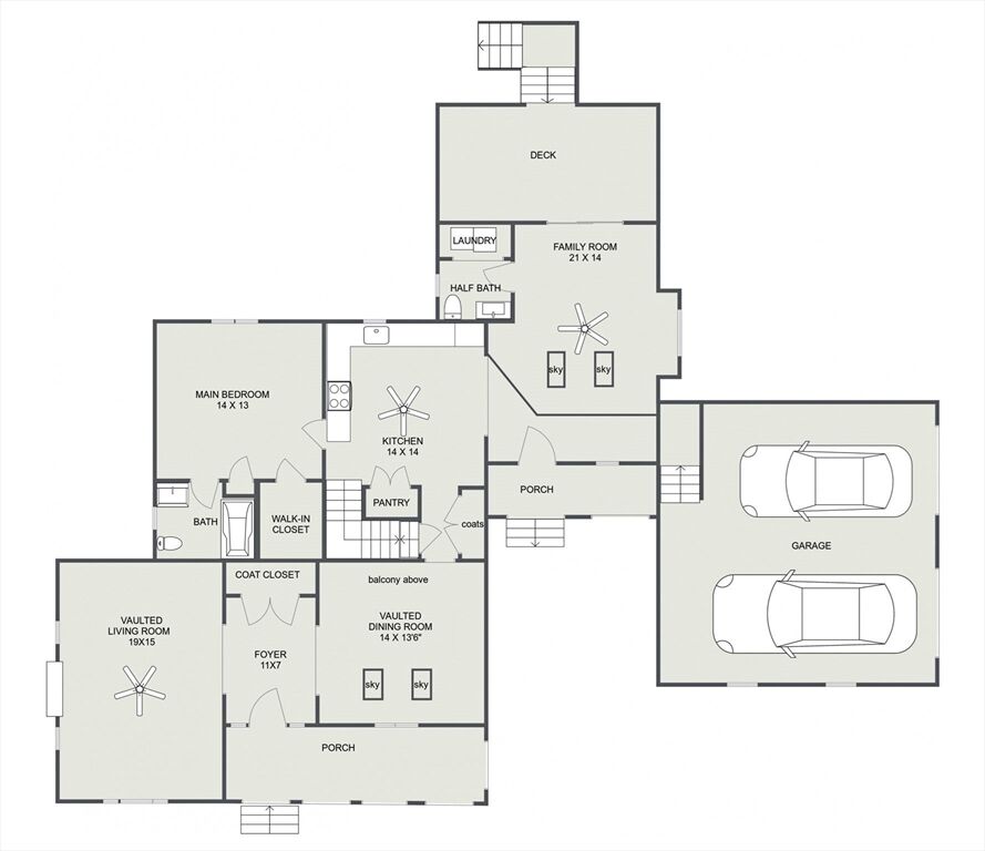 Well loved one-owner home in a very desirable neighborhood. You'll enjoy this contemporary floorplan with first floor Primary Bedroom and two car attached garage. Vaulted ceiling with skylights in the Family Room and Dining Room give the spaces a bright and airy feel. Living Room also has vaulted ceiling and a wood burning fireplace. Tiled Kitchen with large pantry closet has granite countertop with undermount sink. Primary Bedroom has its own bath and walk-in closet. Two other generously sized bedrooms and second full bath on the 2nd level. Carpets are original, but there were never pets living in the house. Wood trim and 6 panel pine doors are in excellent shape. Plenty of storage closets in this home. Laundry area is located in the half bath off the family room. Slider leads to a large deck facing a great view to the north. The walkout basement is unfinished and HUGE. Central AC was just added last year. Central Vac is installed. Roof was replaced in 2006-07 with 30 yr shingles.