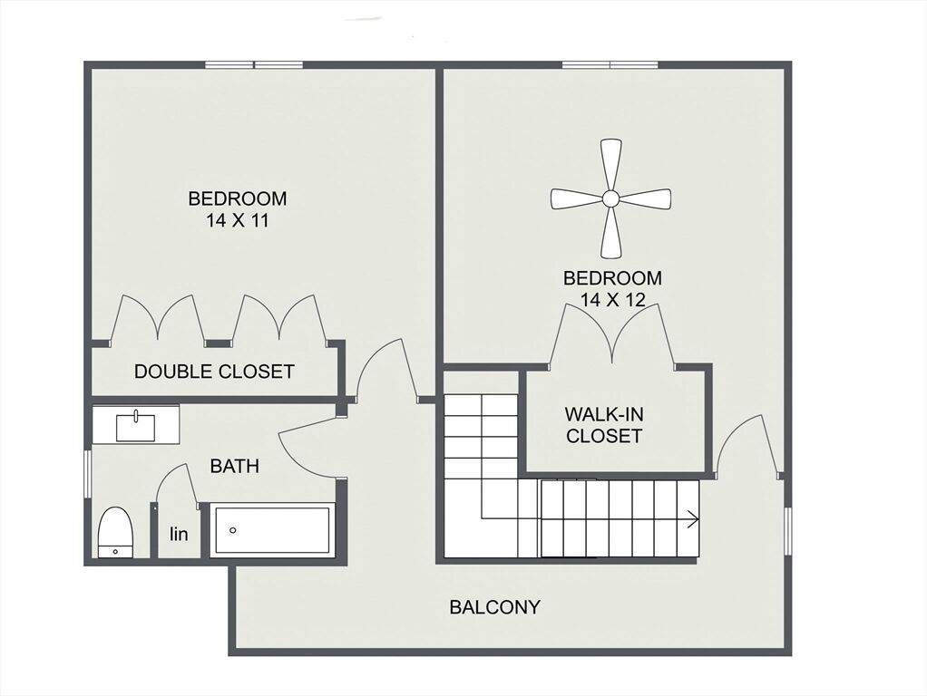 Bedroom 2 | 12X14 Ceiling Fan(s) Flooring - Wall to Wall Carpet Closet - Double |