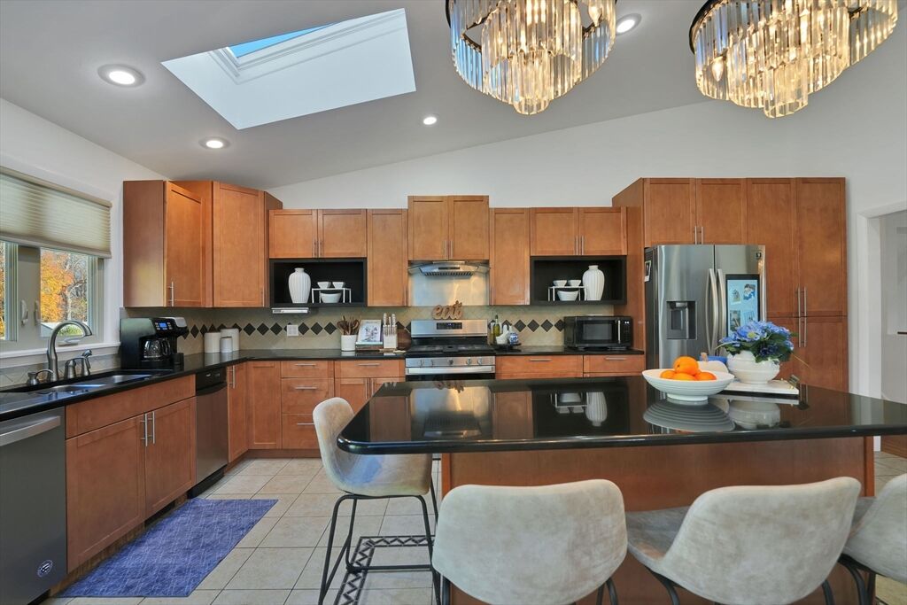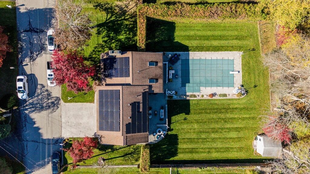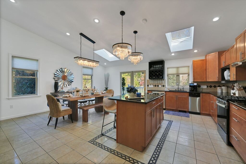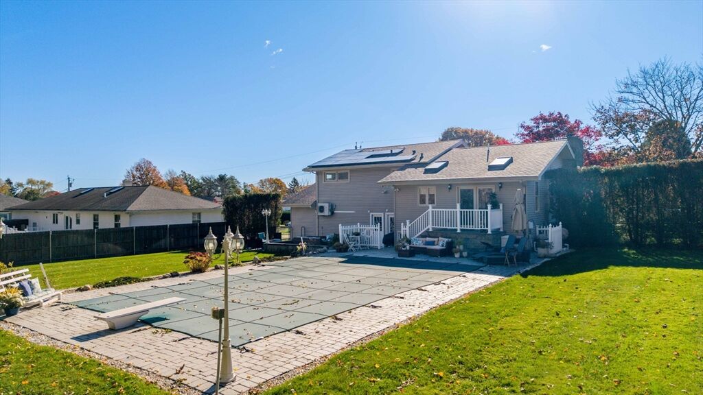 Welcome to this beautiful single-family home offering modern comfort, energy efficiency, and serene privacy. Thoughtfully maintained inside and out, this home has an impressive curb appeal and a bright, open layout filled with natural light. The updated kitchen and dining area feature skylights, elegant lighting fixtures, and a spacious island that is perfect for entertaining. The living room showcases hardwood floors and a cozy fireplace, ideal for relaxing nights in. With 4 bedrooms and 2 full bathrooms, there is room for everyone to spread out in comfort. Enjoy year-round climate control with forced hot air and central AC. Enjoy your private fenced in backyard complete with a heated saltwater pool (reduced utility costs thanks to solar panels), expansive paver patio, fire pit, peaceful views of nature with no rear neighbors and a storage shed for any outdoor equipment. The attached garage has climate control, offers a laundry room for convenience and extra storage.