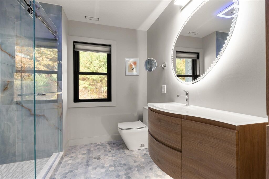 Custom home, in coveted Lakeside Meadows! Sleek modern design with open concept living. NOT your cookie cutter colonial - Gutted to studs, virtually NEW construction. Tremendous curb appeal, East facing entrance leads to grand soaring foyer and to SPECTACULAR Gourmet kitchen with custom cabinetry, high end S/S appliances including professional grade venting system and THE most amazing island, bathed in quartzite and under lit. Open to expansive living room with walnut feature walls. A first floor study easily transforms to extra bedroom with access to 3/4 bath. Upstairs are four generous bedrooms, the primary a DREAM suite with ensuite spa like bath and walk in closet, lined in cedar, with builtins. Large 4th bedroom could be upstairs family room, yoga retreat. Exquisite, custom features throughout. QUALITY construction by respected, experienced builder as personal home with thoughtful, STUNNING design elements. Terrific location in established neighborhood, access to Lake Nabnassett.