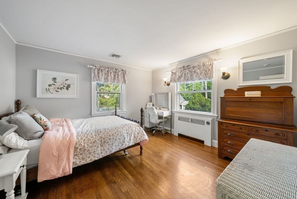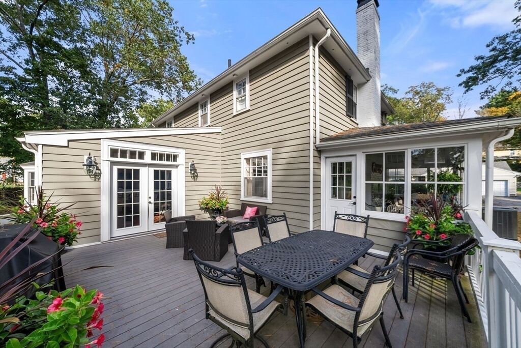 Immaculate colonial on quiet side street–an in-town gem near library, parks & Dover’s A+ elem. Hip roof w/dormers, side porch & portico offer timeless details and curb appeal. Deceptively spacious 3,000+ SF w/ inviting foyer leading to front-to-back LR w/ WB FP. Gleaming HW floors & nat. light set the stage for holiday entertaining or cozy mornings. Sunroom w/panoramic yard views is a May–Oct fave for wine & cheese. Huge ctr island w/gas cooktop, great storage & workspace for busy home chefs. Built-in office area = multitasker’s dream. Open-concept FR flows to oversized deck–perfect for summer BBQs. Side entry w/powder rm & classic DR complete main lvl. Upstairs: 3 generous BRs w/excellent closets share full bath. Ensuite primary w/ walk-in closet is cozy retreat . LL bonus rm ideal for gym, gaming, or teen hangout. Enjoy Dover’s top-rated schools, 17 mi. of trails, new community ctr, & low taxes–just 20 miles from Boston. Showings begin immediately!