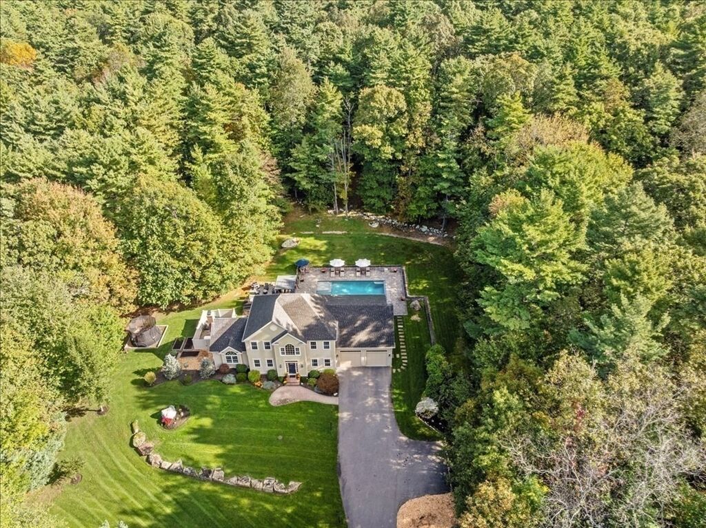 Luxury Woodland Estate – A Private 5-Acre Retreat Lot Oasis Experience refined living in this exceptional 4-bedroom, 3.5-bath estate, set on 5 acres of pristine wooded landscape. This elegant home welcomes you with a grand open foyer and soaring cathedral ceilings, sunlit palladium window, creating a sense of space and sophistication. The chef’s kitchen is a masterpiece, featuring granite countertops, stainless-steel appliances, and a premium Viking oven—perfect for culinary enthusiasts. A cozy fireplace anchors the living room space, while first-floor laundry adds everyday convenience. The finished basement offers in-floor heating and a full bath, ideal for a luxurious guest suite or entertainment haven. Step outside to your resort-style backyard, complete with a heated gunite saltwater pool with automatic cover, hot tub, encased in custom stone walls, designer patio deck, designated fire pit area—all surrounded by lush woods for ultimate privacy and tranquility, truly a must see!