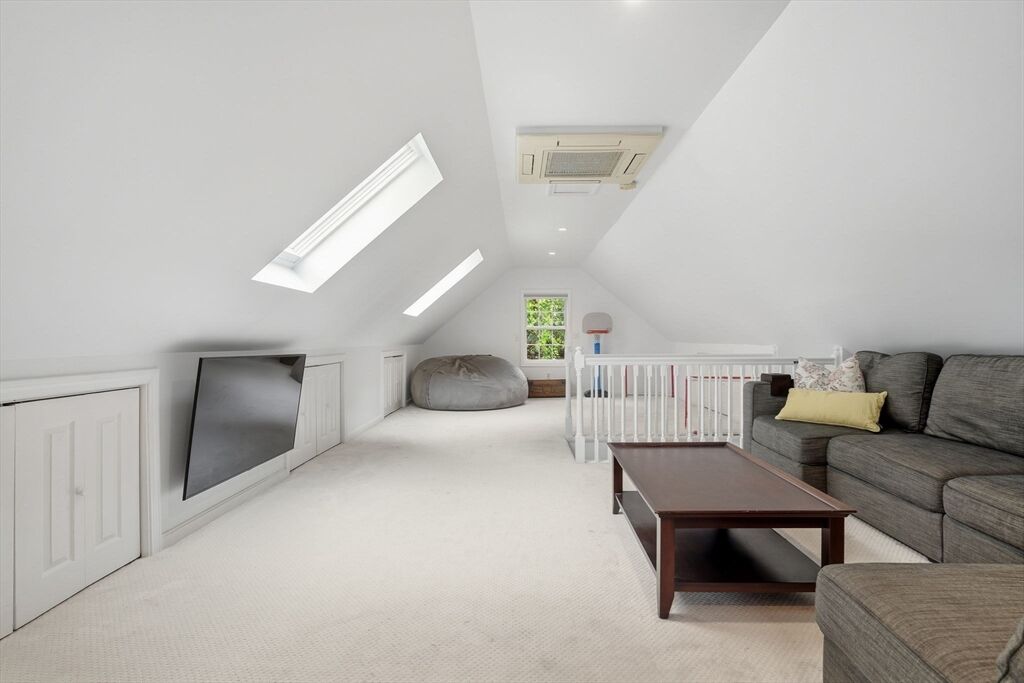 Truly a magnificient & updated property with 2 attached garage parking spaces, all located in quiet cul-de-sac where homes are so rarely available. Main living level offers fully modern and recently renovated kitchen w/ breakfast bar, open to living room w/ fireplace. Dining room w/ bay windows adjacent to addl den / office space plus convenient 1/2 bath & main living level laundry. 2nd floor offers 3 spacious bedrooms, each w/ large closets. Full shared bathroom on this floor for kids/guests. Primary bedroom has custom walk-in closet & ensuite bath w/ double vanity & walk-in shower. Third floor w/ amazing ceiling height & skylights serves as playroom, addl tv room/office/bedroom. Private back yard w/ mature trees & spacious, tiered deck, perfect for entertaining. Loads of storage and bonus workshop area. Outdoor enthusiasts will love nearby Spot Pond, Tri-Community Greenway & Fells Reservation. Convenient to restaurants/shops & a commuter's dream location!
