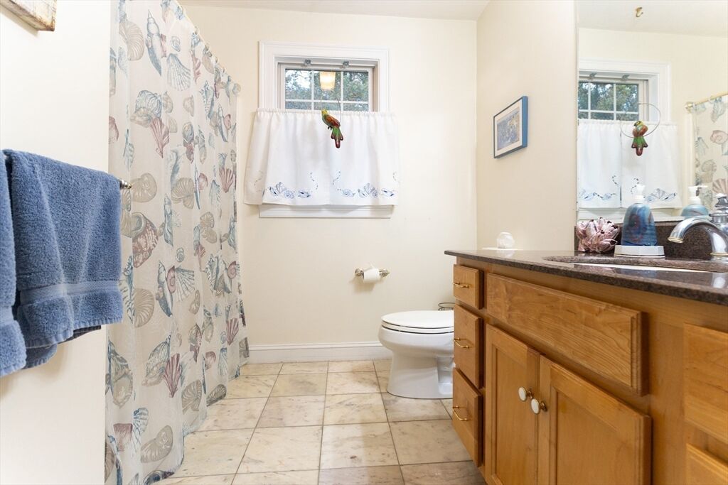 Look no further! This four bedroom, two and a half bath colonial on a corner lot in Eastfield Estates has it all.The first floor features a large eat-in kitchen with island and pantry closet. Extra features include spice drawer, pull out drawers and baskets, lazy susan, and a trash/recycle drawer. Sliders lead to the oversized deck overlooking the park-like backyard, perfect for outdoor entertaining or a quiet cup of coffee in the morning. Step down into the family room with an inviting gas fireplace to watch tv, read, or just relax..Formal dining room with wainscoting and living room can accommodate those special family gatherings. A half bath, laundry, and dedicated home office with built-ins, custom desk with drawers, and French doors complete this level. Upstairs are a full bath, four generous bedrooms, incuding a primary with huge walk-in closet and en suite with jetted tub. All this on just over an acre of land. Showings by appointment only.