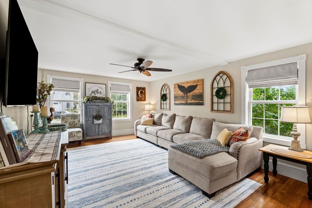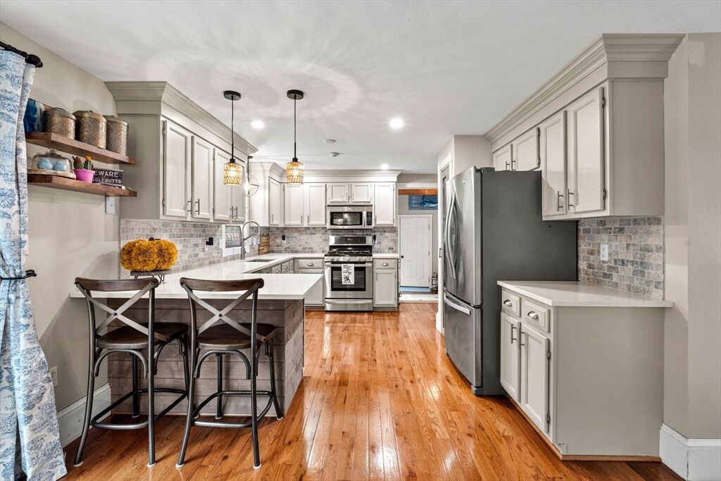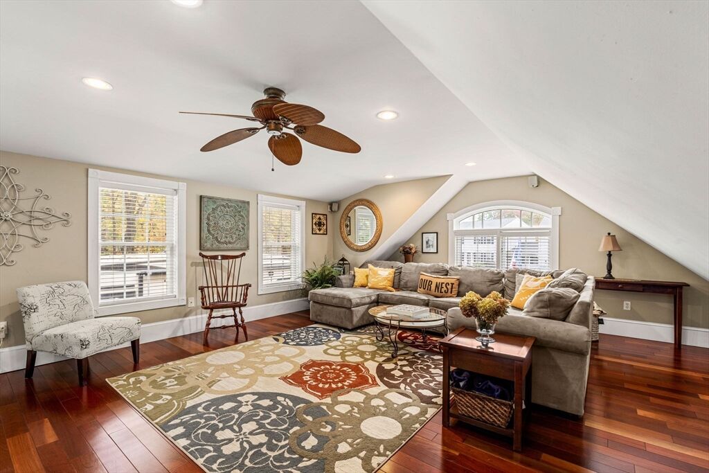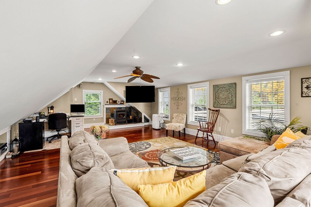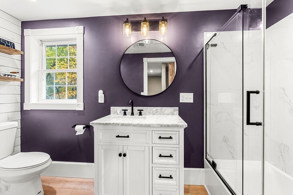 Welcome to 3 Noyes Lane — a stunning 3-bedroom, 2.5-bath home offering over 3,300 sq. ft. of beautifully updated living space on a quiet Merrimac cul-de-sac. The bright, open layout features gleaming hardwood floors, recessed lighting, and a modern kitchen with quartz countertops, stainless steel appliances, and custom cabinetry. Stylishly renovated bathrooms and thoughtfully designed spaces make this home as functional as it is beautiful. The first floor offers great flow for everyday living, while the spacious second-floor great room provides incredible flexibility—perfect for entertaining, a media room, or home office. A welcoming mudroom, partially finished basement and two-car garage add convenience and storage. Outside, enjoy a large deck, storage shed, and a beautifully maintained yard. Just minutes to highways, schools, and the NH border!