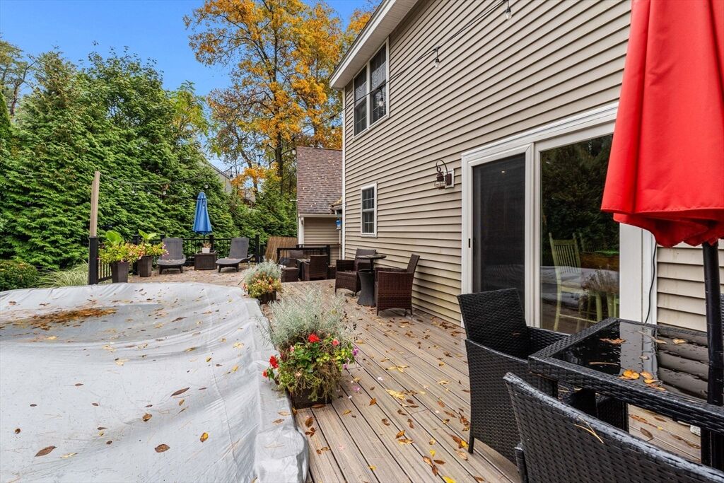 Exterior Features | Porch Deck Deck - Wood Pool - Above Ground Rain Gutters Storage Professional Landscaping Decorative Lighting Screens Fenced Yard Fenced |