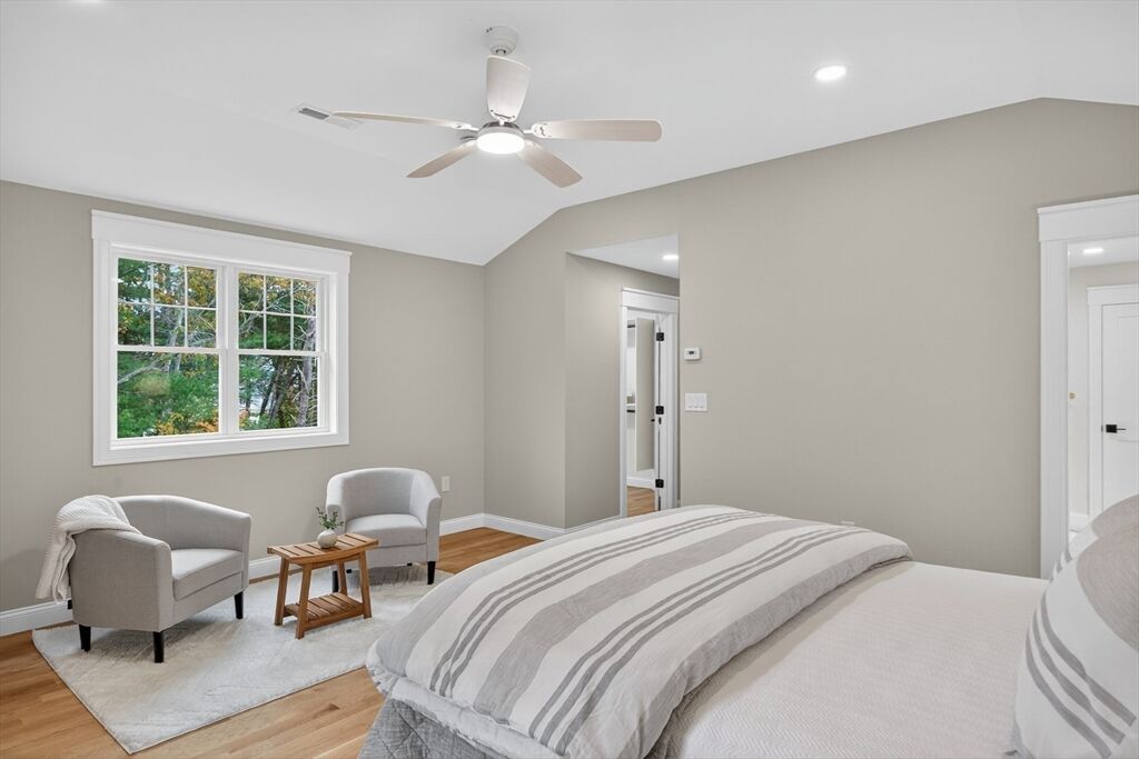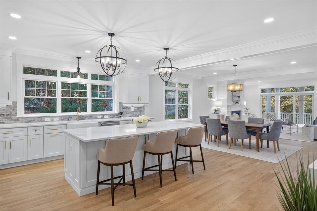 Experience the perfect blend of casual elegance, comfort and function in this thoughtfully designed 3,700 sf custom home. The bright, open floor plan features a chef's kitchen with quartzite countertops, Bosch appliances and 9' center island flowing seamlessly into the dining and living areas. Enjoy a cozy gas fireplace, white oak flooring throughout, a private home office & access to a spacious deck ideal for entertaining or relaxing in privacy. The primary suite offers a luxurious retreat with a spa-like bath, large walk-in closet & private deck overlooking serene surroundings. 3 additional bedrooms, 2 full baths and a convenient laundry room complete the upper level. The walk-out lower level provides a versatile Bonus Room with high ceilings, large windows & direct access to an outdoor patio perfect for gatherings. Exceptional property offering the best of Cape Cod Living & Commuter Convenience. This is a rare opportunity! Agent related to Seller.