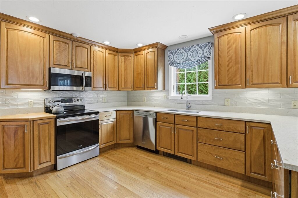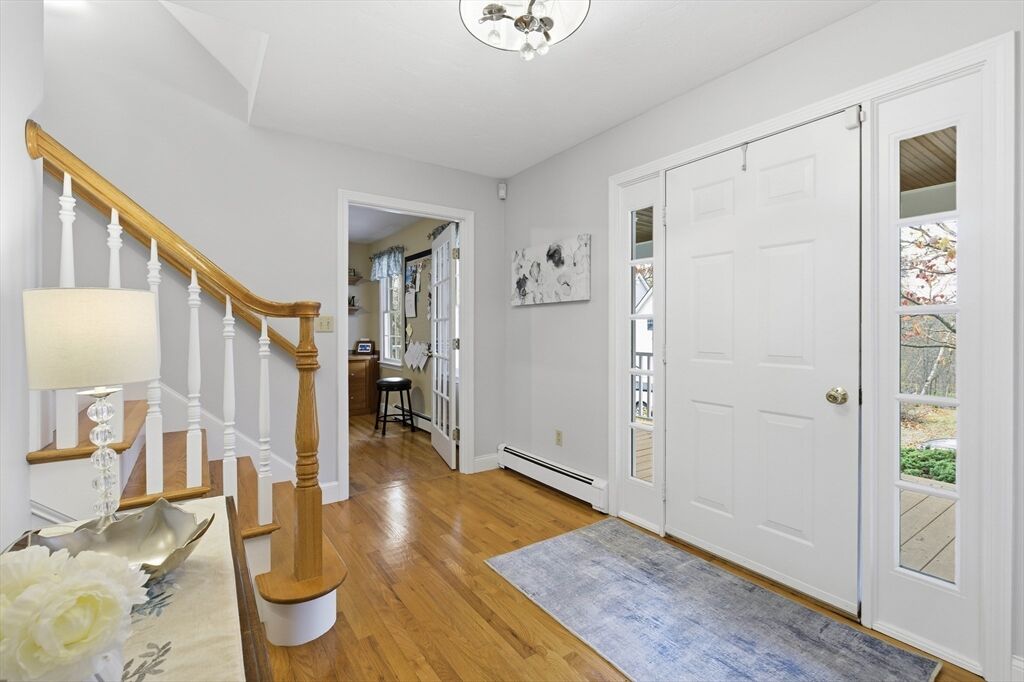 Welcome to this beautiful 4-bed Colonial in the highly desirable Nathan Heights neighborhood! Classic curb appeal shines with an inviting farmer’s porch, stone retaining walls, and a fenced backyard featuring a patio, shed, and yard irrigation system. The heated two-car under garage offers year-round convenience. Inside, the updated kitchen with quartz countertops opens to a sun-filled dining area and vaulted family room with a striking stone wood burning fireplace. Additional highlights include a private office with French doors, formal dining room, and first-floor laundry. Hardwood floors run throughout, complemented by a newer roof, boiler, and efficient heat pump systems for heating and cooling. A finished basement adds versatile living space. This home seamlessly combines charm, modern updates, and everyday functionality in one of the area’s most sought-after neighborhoods —and you simply can’t beat the value for this quality!