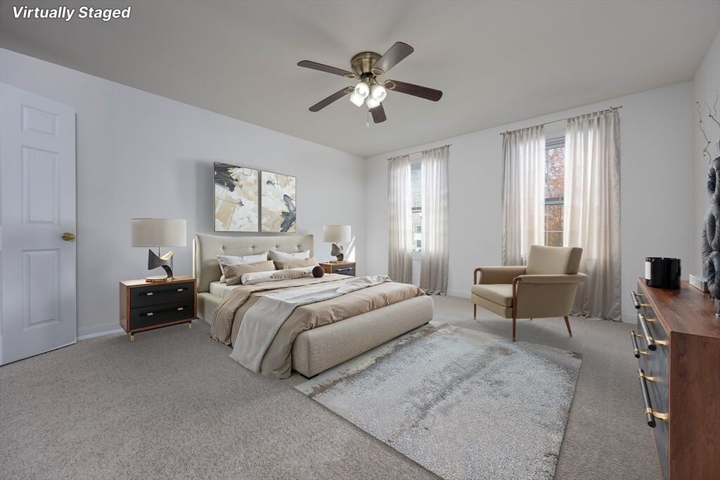 | Bedroom 3 | 9X11 Ceiling Fan(s) Closet Flooring - Wall to Wall Carpet Lighting - Overhead |