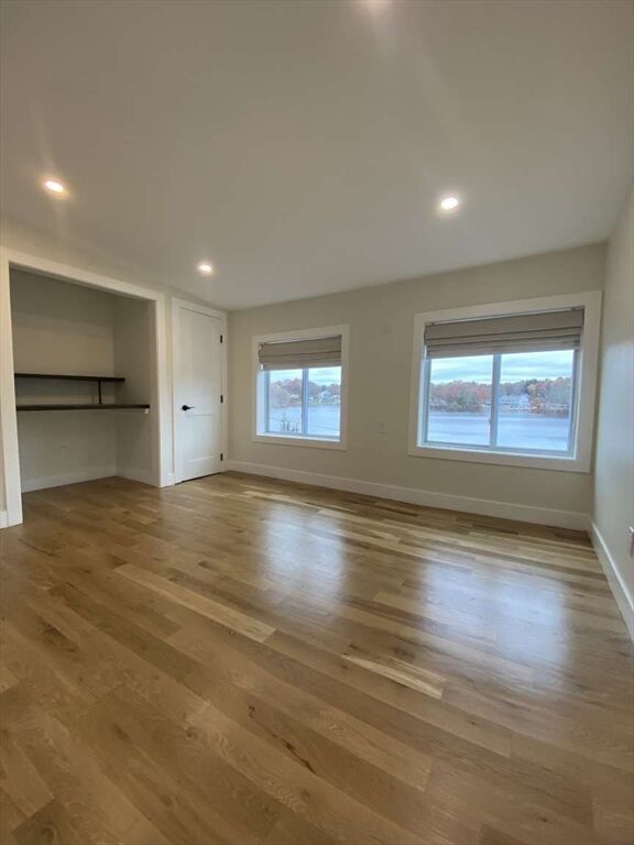 Stunning modern waterfront home with a private beach offering year-round recreation—swimming, kayaking, fishing, and winter sports. Located on a quiet dead-end street with quick access to highways, shopping, dining, healthcare, skiing, and top-rated schools. Features an open floor plan with natural white oak flooring, oversized windows, and a brand-new kitchen with stainless steel appliances, quartz countertops, a farmhouse sink, and a large island, plus a wet bar with wine fridge. Includes 3 bedrooms, 3 full baths, and a finished lower level with ADU potential. Additional perks: electric car charger, garage + off-street parking, mini-split AC/heat pump, public water/sewer, whole-house filtration, fenced yard, and no flood insurance required. Condo docs to be finalized before closing.