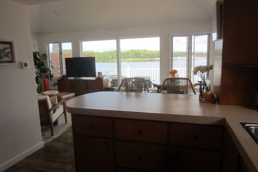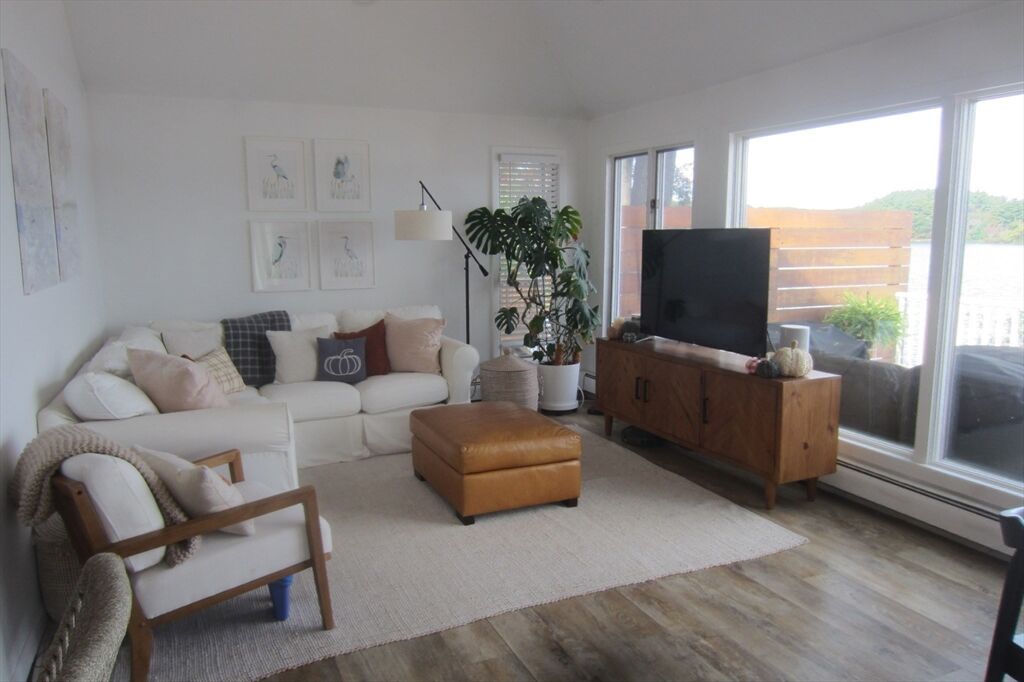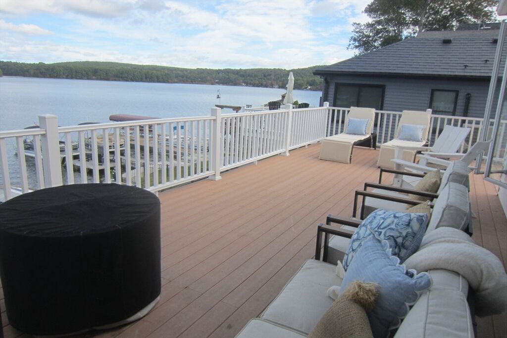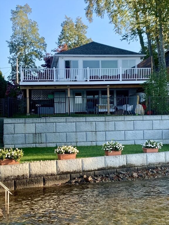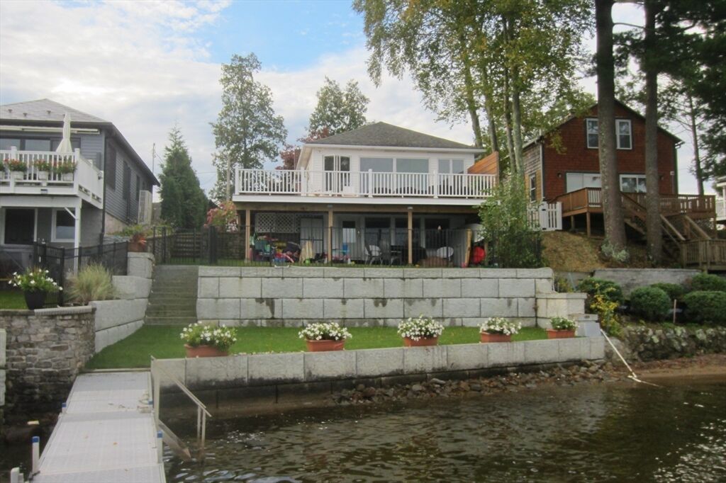 Webster Lake – Panoramic Views! Beautifully renovated + lovingly maintained, this lakefront home offers 1,700+ sq ft of light-filled living. Open kitchen, dining, living room feature cathedral ceilings + dramatic wall of windows overlooking the lake. Primary suite with a large closet + private bath w/shower; 2 additional bedrooms share a full hall bath. Lower level family room w/direct walkout to water + nearby laundry + storage. Wrap around deck w/new vinyl railings, terraced multi-level entertaining areas + sandy beach. Professionally landscaped yard + storage shed. Plenty of parking + numerous updates make this move-in ready! SHOWINGS - Thursday and Friday October 2 and 3 (10am to 1 pm both days WITH APPOIINTMENT) Open House Sat and Sunday 10 am to 1pm