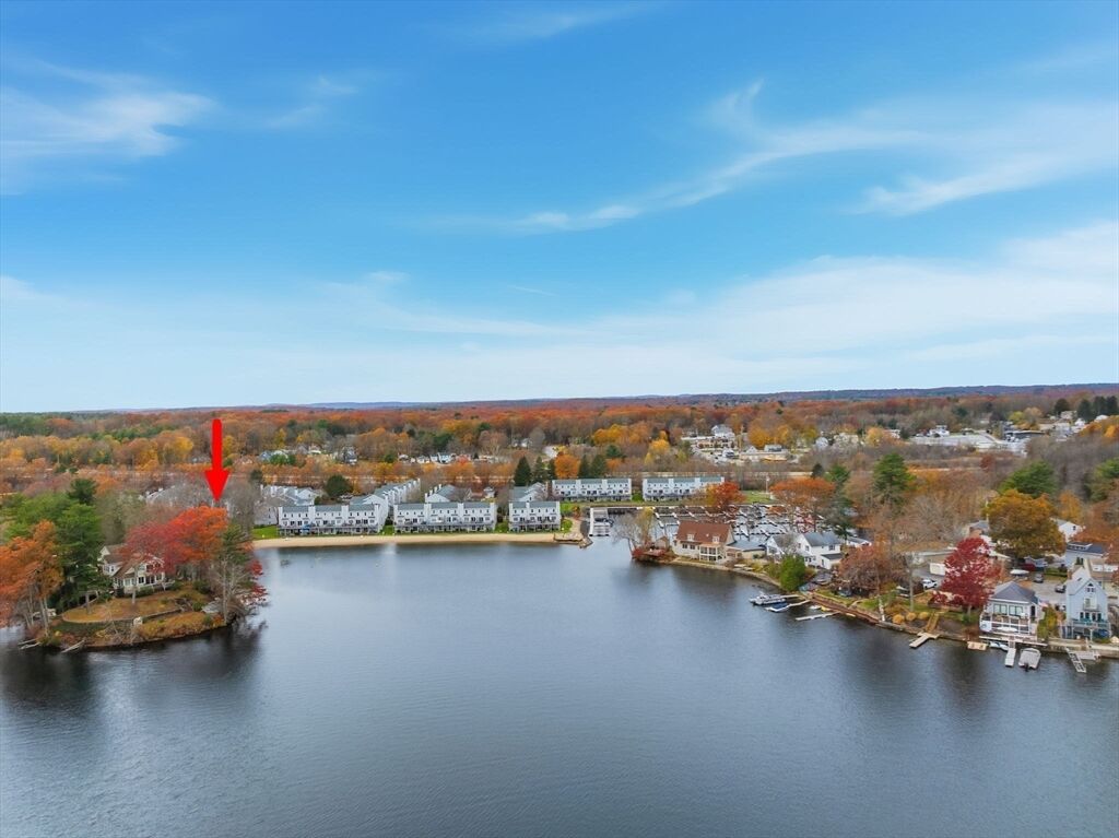 Lake life at Treasure Island. Opportunities in this highly sought after Webster Lake community are rare and for good reason. This beautifully maintained townhouse offers a bright, open living space with a natural flow that feels both spacious and welcoming. The main level features an inviting living and dining area, a well appointed kitchen with stainless steel appliances and quartz counters. Enjoy a private deck overlooking mature trees and green space, one of the few units offering the added bonus of a private backyard setting in a condo community. The finished walkout lower level expands the living space with a fireplace, half bath, and direct access to the private backyard. In-unit laundry and an attached garage add everyday ease. TWO DEEDED BOAT SLIPS, beautifully maintained grounds, a heated salt-water pool and private beach round out the lake-life amenities, with quick access to I-395, shopping, and dining this home pairs everyday convenience with the best of LAKESIDE LIVING!