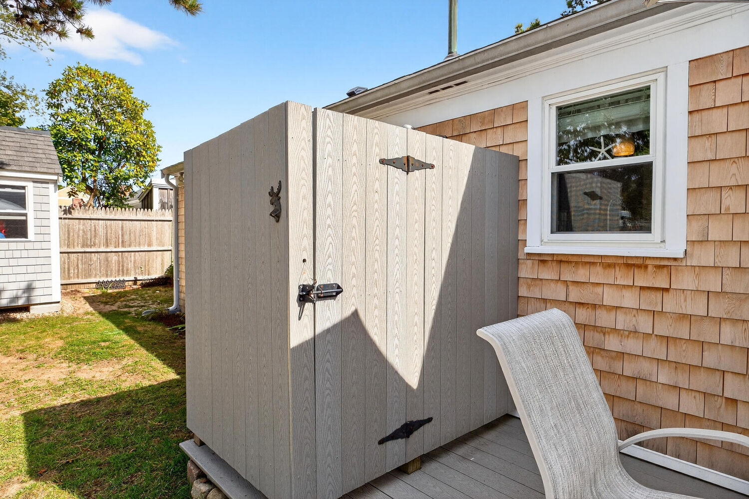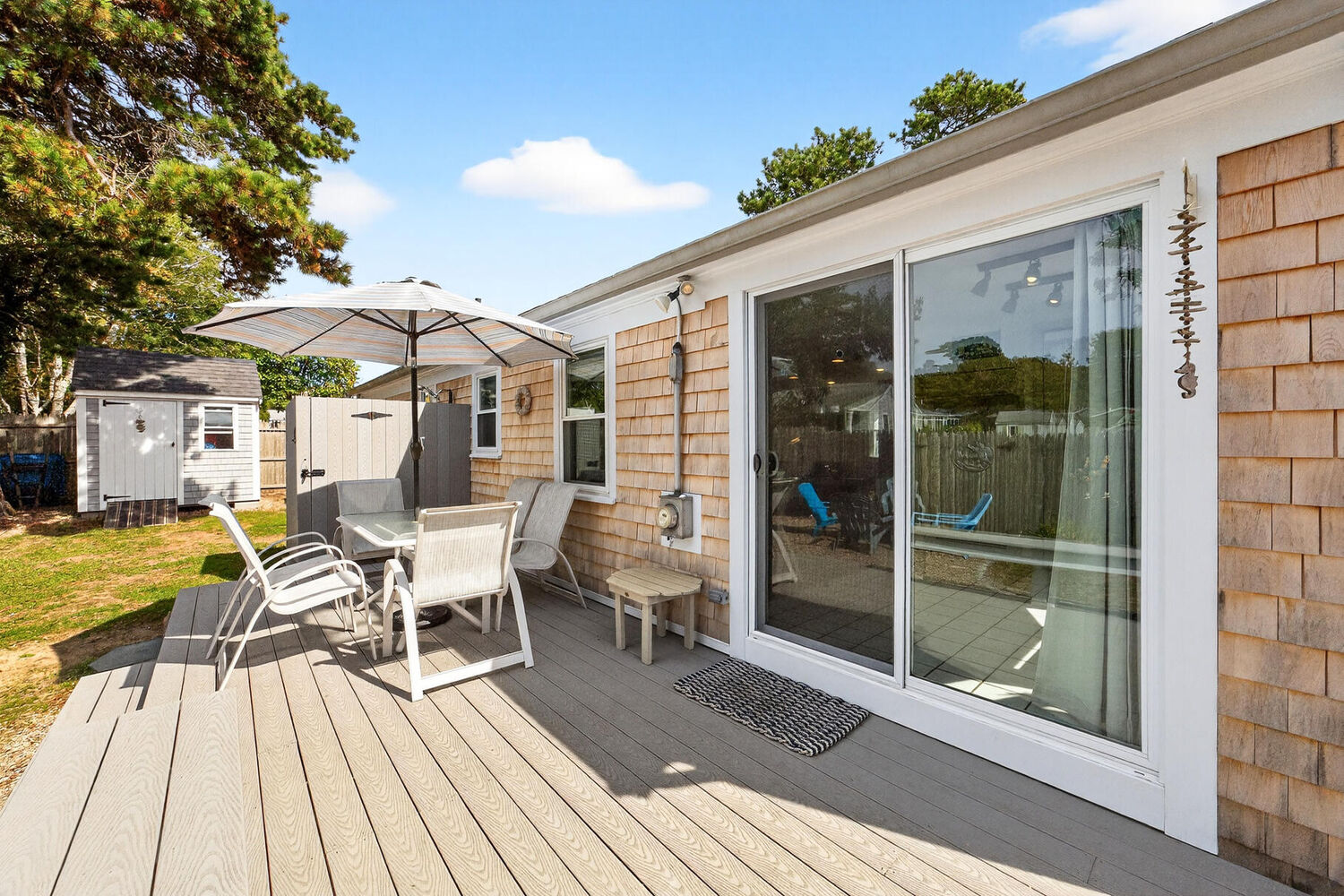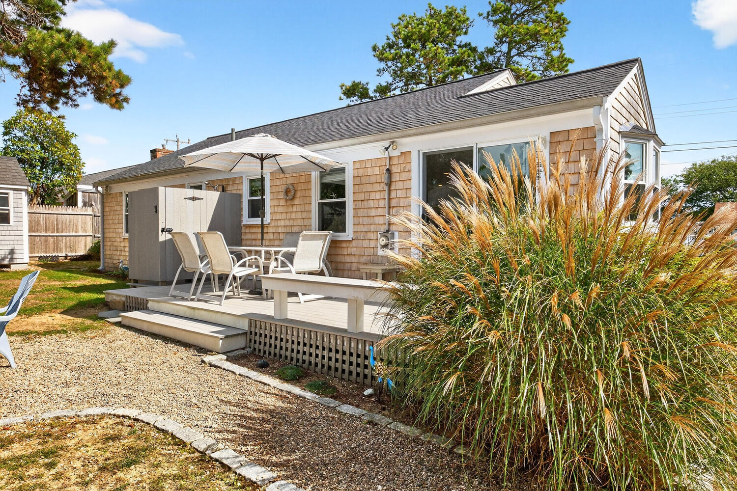 Discover coastal living on Easy Street! This delightful 3-bedroom, 1-bath cottage is just a short stroll from the sandy shores of Nantucket Sound. Inside, you'll find hardwood floors throughout, a sun-filled kitchen with dining area, and a welcoming living room with a bay window and a stone ventless gas fireplace. A bright sunroom opens directly to the spacious deck, creating the perfect flow for indoor-outdoor living. Step outside to enjoy a private backyard designed for relaxation and fun--featuring an outdoor shower to rinse off after the beach, a fenced yard for privacy, and two storage sheds for all your gear. Recent updates include new shingles and a new roof in 2024, along with a gas fireplace offering both style and peace of mind. With restaurants and local amenities close by, this cottage is the perfect blend of coastal charm and everyday convenience.