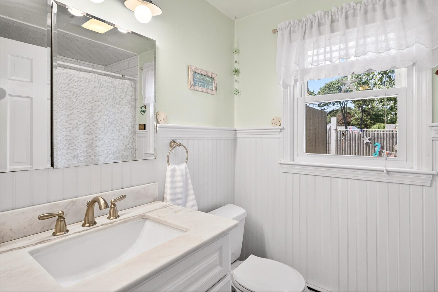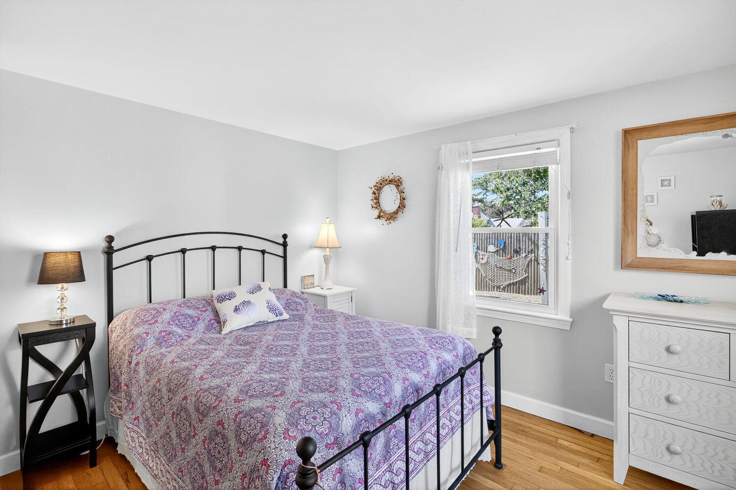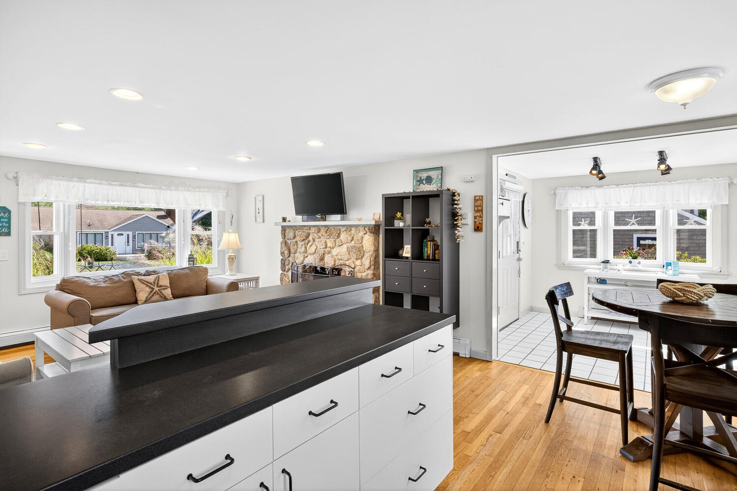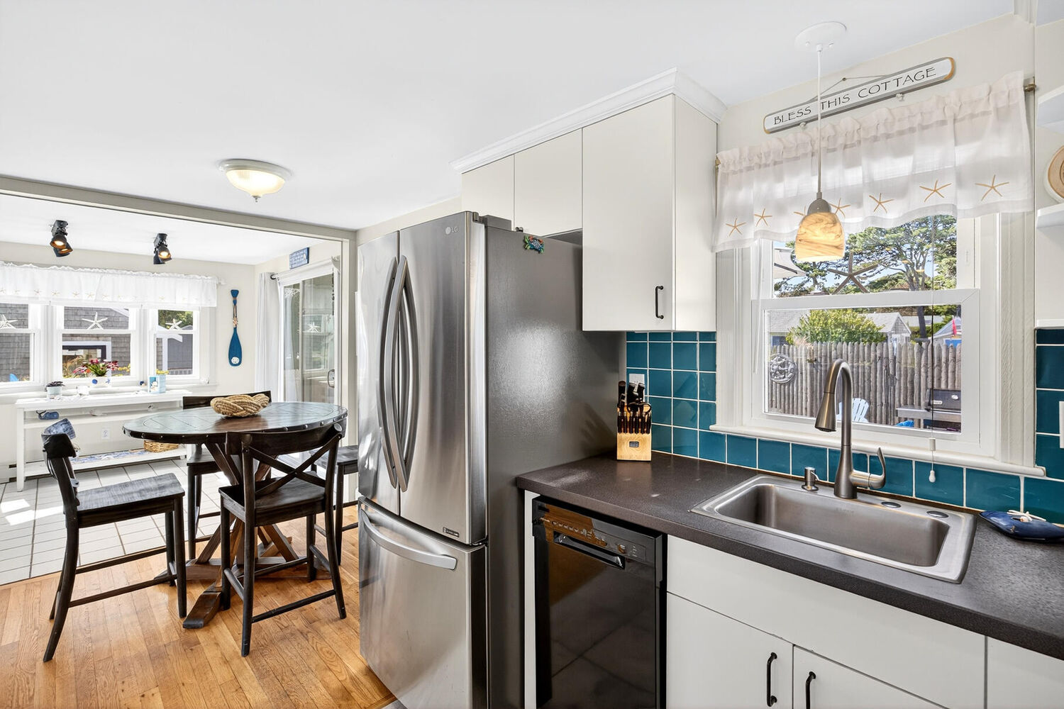Discover coastal living on Easy Street! This delightful 3-bedroom, 1-bath cottage is just a short stroll from the sandy shores of Nantucket Sound. Inside, you'll find hardwood floors throughout, a sun-filled kitchen with dining area, and a welcoming living room with a bay window and a stone ventless gas fireplace. A bright sunroom opens directly to the spacious deck, creating the perfect flow for indoor-outdoor living. Step outside to enjoy a private backyard designed for relaxation and fun--featuring an outdoor shower to rinse off after the beach, a fenced yard for privacy, and two storage sheds for all your gear. Recent updates include new shingles and a new roof in 2024, along with a gas fireplace offering both style and peace of mind. With restaurants and local amenities close by, this cottage is the perfect blend of coastal charm and everyday convenience.