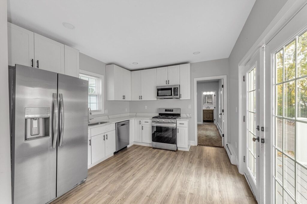 Move yourself or your tenants right in! This updated multi-family residence is a fantastic opportunity for an owner-occupant or an investor looking for cash flow. The larger first floor unit is vacant and turnkey, with three bedrooms and two full baths, including a primary bedroom suite with two closets and a floor to ceiling tiled walk-in shower. There are also French doors out of the back of the apartment to a large composite deck for entertaining or just enjoying warmer days outside. The second unit upstairs is currently rented and has two bedrooms and one full bath. Both apartments have updated kitchens with young SS appliances, granite counters, wood cabinets and laundry hook ups. Separate utilities with energy efficient combi-boiler systems for heat and hot water for each unit. Convenient location near Milford Regional Hospital with easy access to major routes, public transportation, shopping and restaurants.
