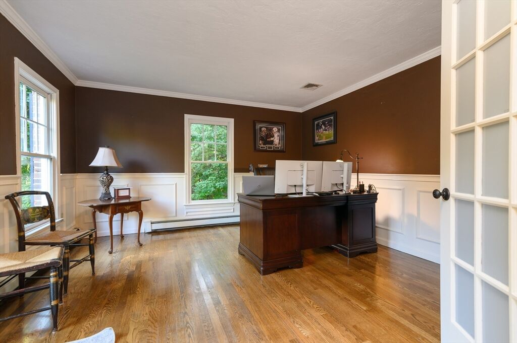 Interior Features | Wainscoting Crown Molding Home Office Wet Bar Wood Tile Carpet Flooring - Hardwood |