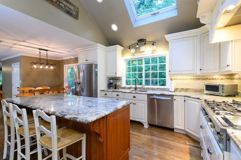 Location, Location, Location! Beautiful colonial located on a cul de sac in a much sought after neighborhood! The two story grand foyer leads you to a spacious and open family room and kitchen! The chef in your family will love the renovated kitchen with professional grade gas cook top, vent system and double wall ovens! Additional features of the kitchen are the oversized island, granite countertops, vaulted skylit ceiling, pantry and wine cabinet! The stone fireplace in the family room, complete with a wet bar, will keep your family warm and cozy! Pocket french doors lead you to the oversized formal dining room. Wainscoting and french doors adorn the home office. Upstairs you will find a luxurious primary suite with a huge walk-in closet and stunning new bathroom featuring double sinks, an oversized 5 x 5 foot shower and a soothing soaking tub! Also, a full bath and 3 additonal spacious bedrooms! Great family room in the basement and a nice shed! Great commuter location!