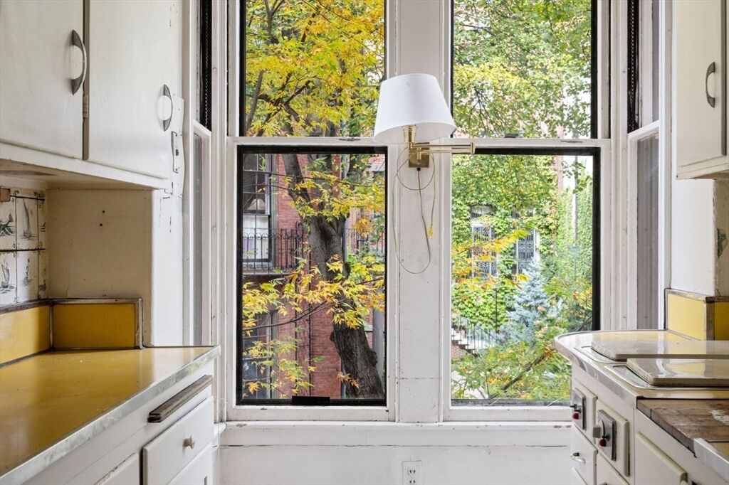 Incredible rare opportunity on upper Chestnut Street, this distinguished Beacon Hill residence is on the market for the first time in over 50 years allowing for personalization and restoration at a truly iconic location. Rich in period detail, the unit features 3 living levels, multiple fireplaces, box windows, and abundant natural light. Double etched-glass doors open to the gracious entry foyer and staircase which lead to beautifully proportioned rooms. The first level features living & dining rooms w/ marble fireplaces and Chestnut St views. The upper two floors offer 4+ bedrooms and 2 full baths and spectacular sunlight. The top floor features a full staircase to the roof with sweeping city views (a new slate and rubber roof in 2024 temporarily replaced the deck). Additional common storage in the bldg’s lower level. A timeless Beacon Hill gem ready for its next chapter.