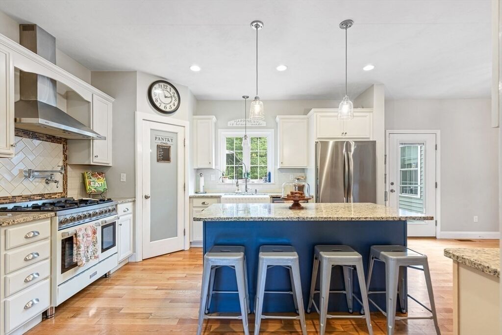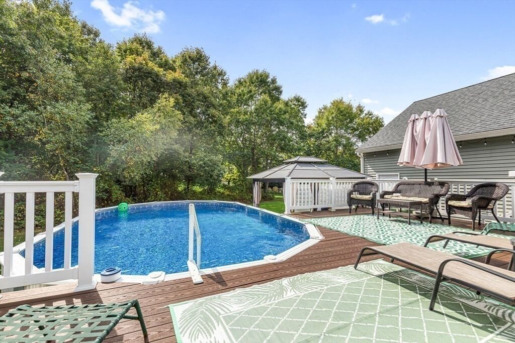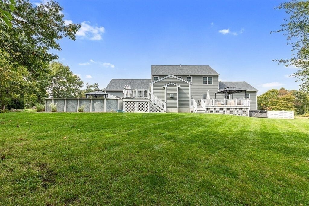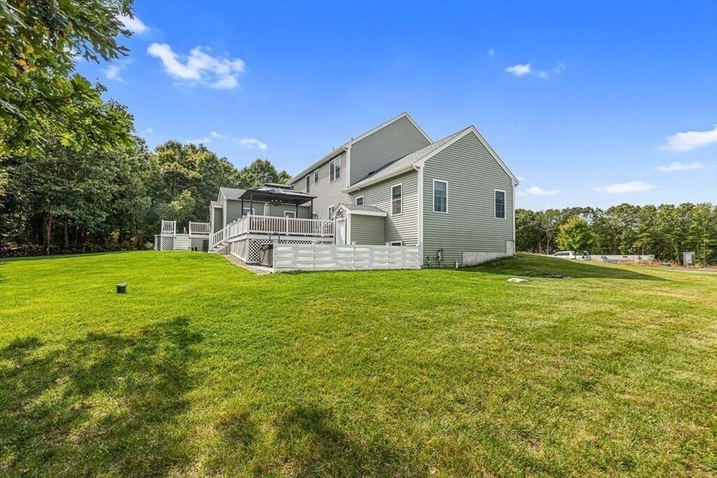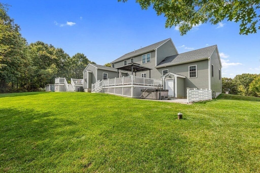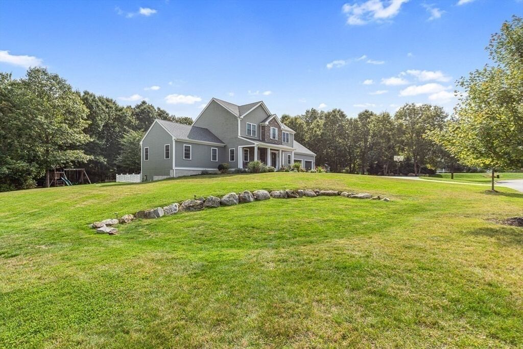 Welcome to 32 Ridge Street in highly coveted Pierce's Point Estates. This stunning, custom built 2017 colonial sits directly across the street from the Taunton River and offers comfortable, luxury living in one of Berkley's most desirable neighborhoods with water views! This incredible property offers 3000 square feet of above grade living space, 5 bedrooms, 3.5 bathrooms, and not one, but TWO primary suites including one on the first floor! You will admire 9 foot ceilings, a gorgeous eat-in kitchen, first floor laundry room, and so much more. The basement has been beautifully finished and offers an additional 1144 square feet of living space. The oversized, 2 car garage has crisp, clean epoxy flooring. Sitting on a large, 1.5 acre lot, you can enjoy outdoor entertaining on two large back decks by the pool, spend time in the garden, or take a short walk to the private neighborhood beach. Other notable upgrades are irrigation system, whole house generator hookup, and electric pet fence.