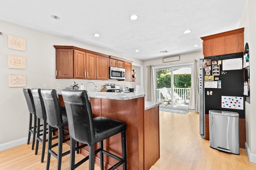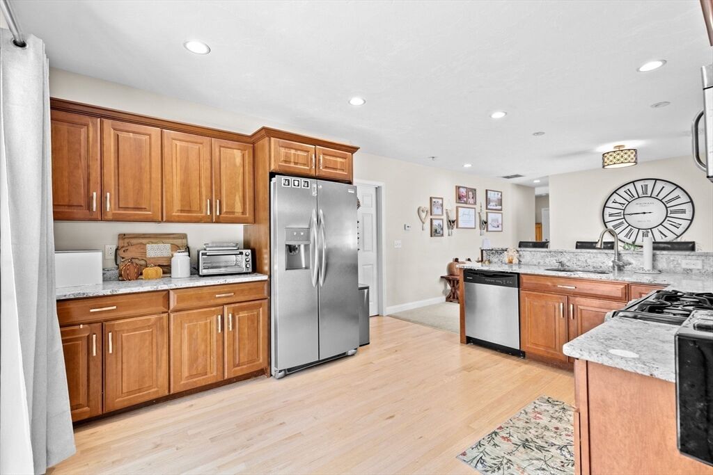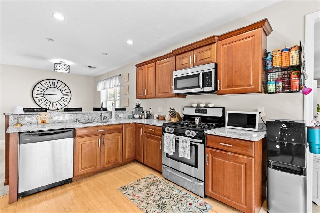 This multi-family residence presents an opportunity to own a large 2-Family property on a quiet dead-end street. First floor unit offers open floor plan w/kitchen, dining & living room all with hardwood floors and two large bedrooms. The side entry offers a mudroom w/laundry hook ups, a large pantry/closet & access to well-maintained back yard. Second floor unit offers cherry cabinets, granite counter tops & S/S appliances. Adjacent to the dining area there is access to a generous deck and the backyard. The two nice size bedrooms include spacious closets. An additional room has possibilities of a third bedroom along with a full bath. Down the hall you will find a half bath w/laundry, a large closet & a giant family room. The oversize two car garage has access to both units, a full basement, and the backyard. The basement has been remodeled to include a children’s play and learning area with a mini theater. Close to Rt. 18 the commuter rail and the South Shore Hospital.