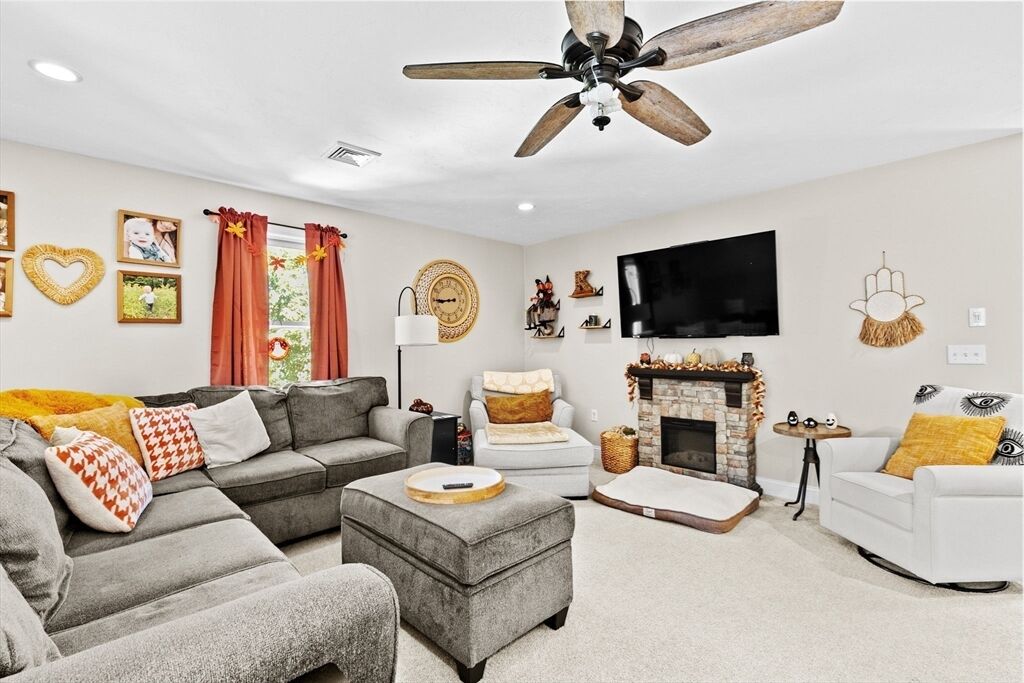 Interior Features | Ceiling Fan(s) Pantry Stone/Granite/Solid Counters Upgraded Cabinets Upgraded Countertops Bathroom With Tub & Shower Living Room Dining Room Kitchen Laundry Room Mudroom Family Room Wood Tile Carpet Hardwood |