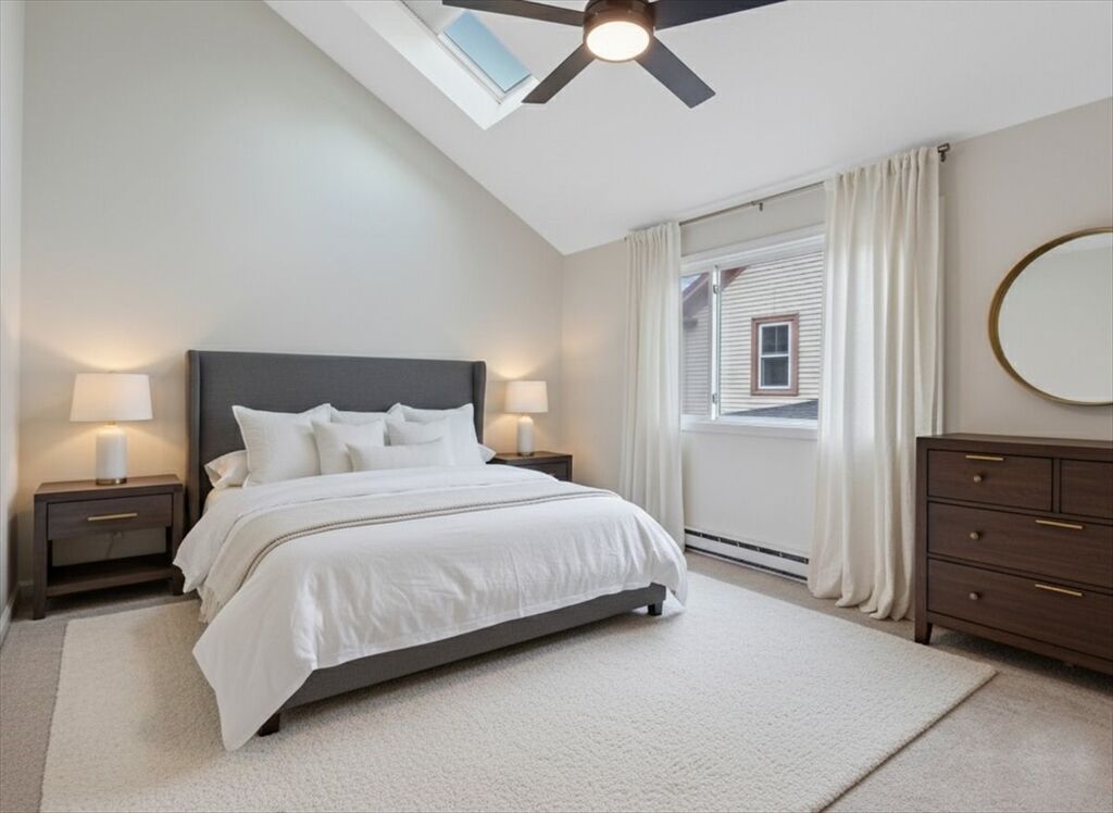 Move-in ready townhouse in sought-after Pollard Farms! This 2-bed, 2.5-bath home features hardwood floors throughout the first floor, a bright kitchen with bow window, and brand-new stainless steel appliances. Living room sliders open to a private deck. The primary bedroom offers a cathedral ceiling, skylight, and double closet with recessed lights, and new carpeting throughout the bedrooms. Fresh interior paint, new light fixtures & ceiling fans, and an updated first-floor half bath add to the appeal. Enjoy extra space in the finished lower level with new luxury vinyl flooring, a full bath with shower stall, and stack washer/dryer. Pull-down attic stairs for storage, a new bulkhead, and recently painted exterior complete the package. Stylish, clean, and ready to go! Convenient location...less than a mile to the center of town.