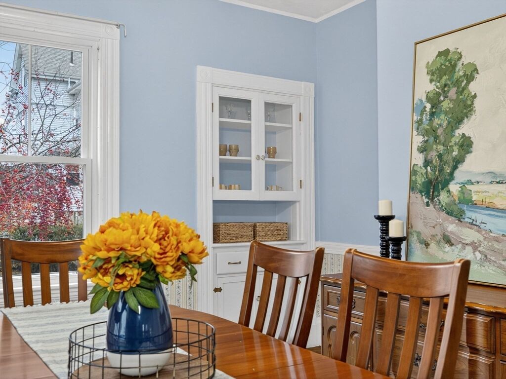 Nestled at 33 Capitol Street, this well-maintained Colonial blends historic charm with modern function, offering 4 bedrooms, 1.5 baths, and over 2,000 sq ft of living space. The first floor includes a gas-equipped kitchen, dining and living rooms, a half bath, and a versatile mudroom for storage or pantry use. The second floor offers three bedrooms and a full bath, with an additional bedroom and a large storage area on the third floor. Gas heat by forced hot air, circuit breakers, and a recent hot water heater. Outside, the property features an unusually spacious yard for Watertown with mature trees, a garage suitable for parking or storage, and off-street parking for up to four cars. Convenient access to major routes, including the Mass Pike and the Newton line.