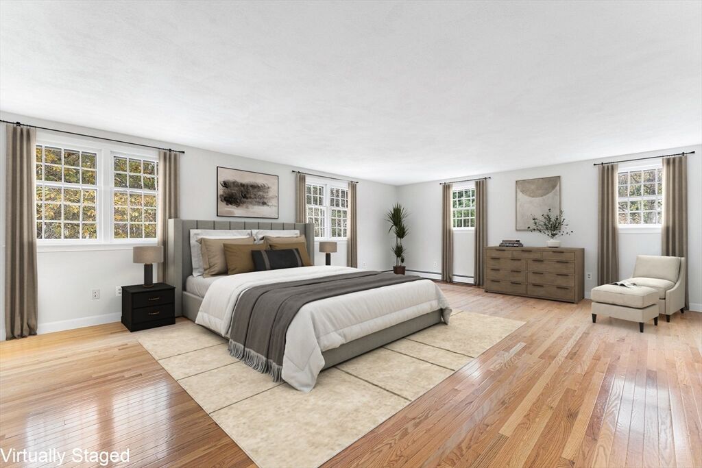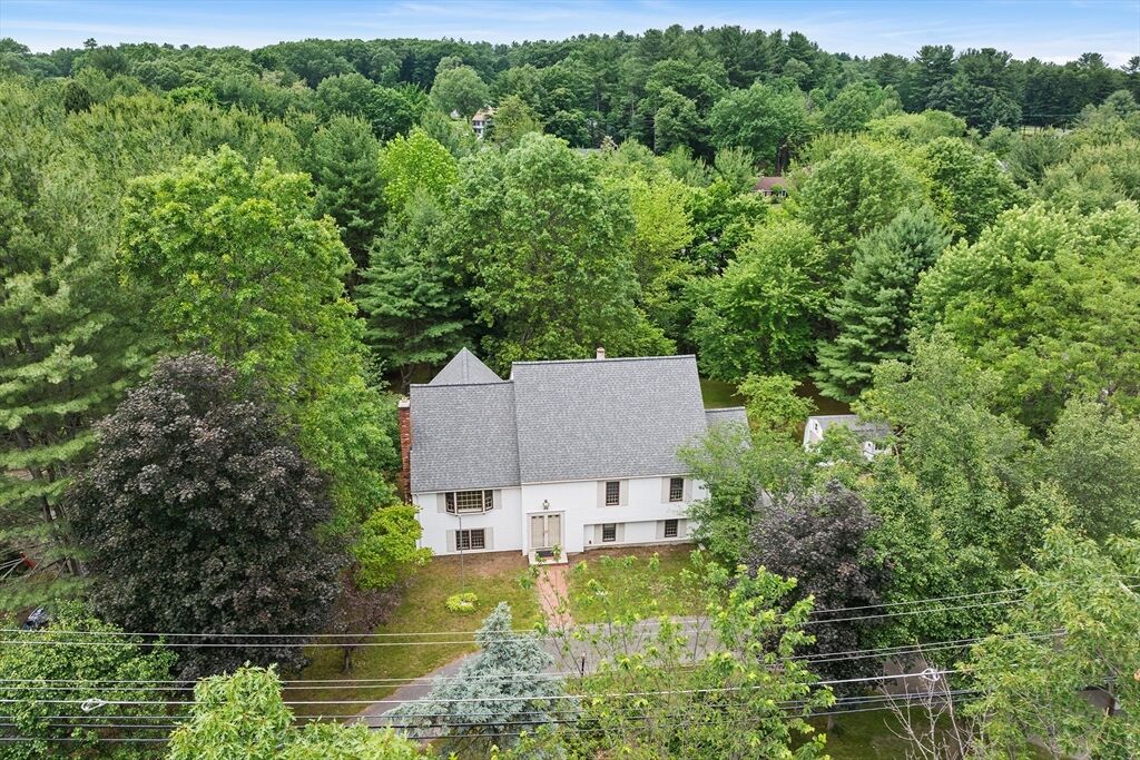 This spacious center-entrance split-level Colonial offers timeless charm and a versatile layout. Just a half-flight up is a sunlit living room, dining room, and expansive sunroom opening to a large deck—ideal for entertaining. The updated kitchen has granite countertops, and three generous bedrooms with ample closets and a full bath complete this level. A private third-level primary suite with hardwood floors provides a peaceful retreat. The lower level features a cozy family room with fireplace, large rec area with pool table, mudroom, laundry, and half bath. Updates include a new roof, flooring, freshly painted interior, boiler, 200-amp electrical with subpanel and generator hook-up, and a circular driveway. Across from Ann Rawlings Greene Reservation with hiking trails, and close to Sanborn Elementary, major highways, and the commuter rail to Boston. Move in and enjoy Fall in your new home!
