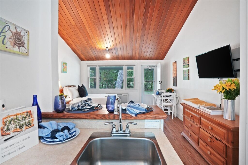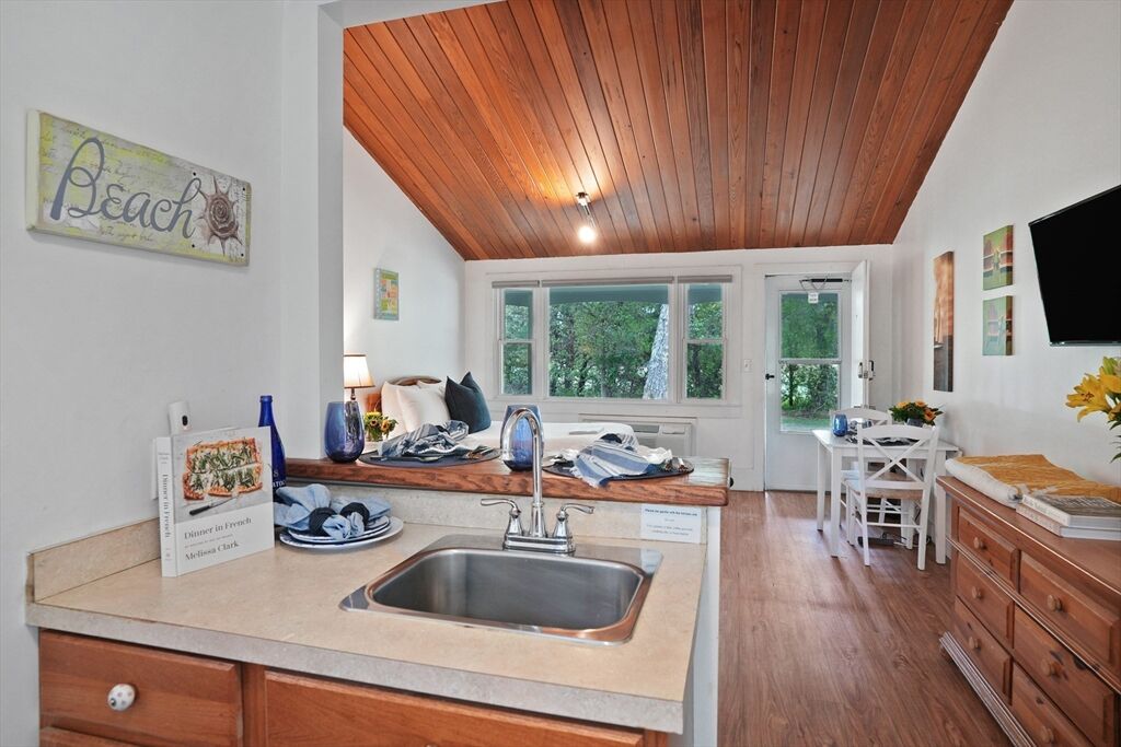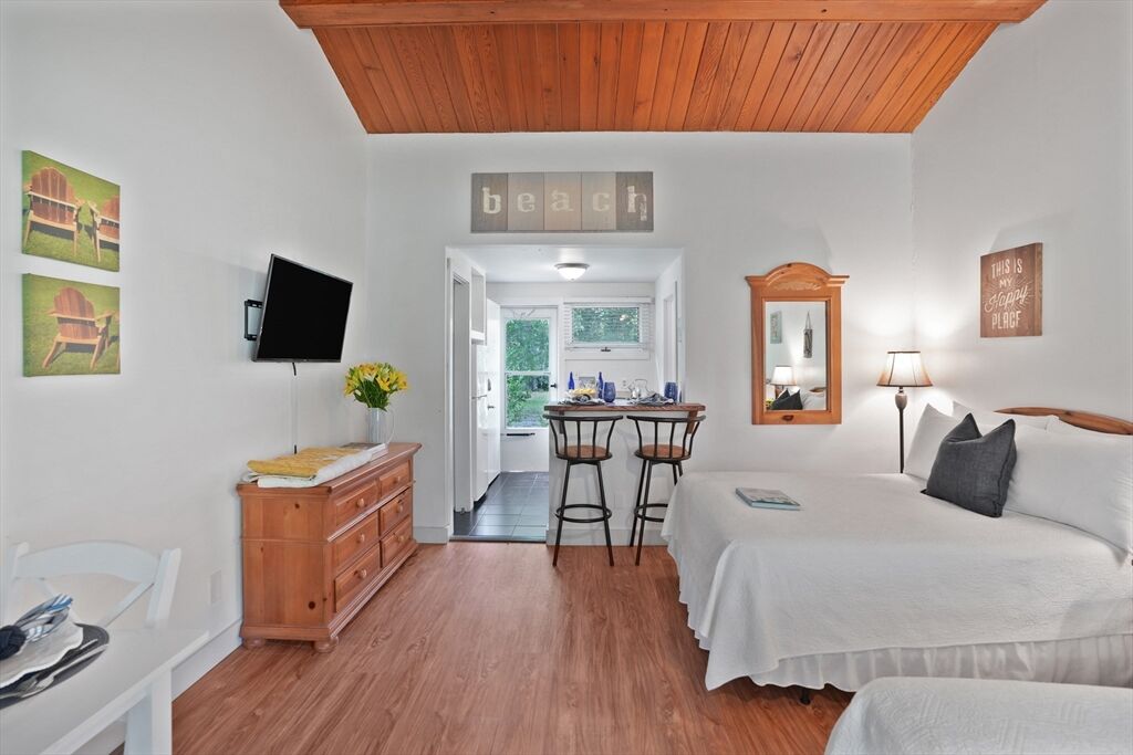 Charming Coastal Condo at Island Inn – Get Your Slice of Martha’s Vineyard! Welcome to a beautifully maintained studio under new management offering relaxed Vineyard living just a bike ride or walk from the beach and downtown Oak Bluffs. This light-filled unit features a practical layout with a bedroom, bathroom and full kitchen – perfect for easy vacation living or weekend getaways. Saunter out onto your covered porch overlooking the lush common lawn, enjoy all the amenities this sought-after condominium community has to offer, including a swimming pool, tennis courts, and meeting rooms. With mature trees, landscaped grounds, and a location adjacent to Noman’s Restaurant and Farm Neck Golf Course, this condo blends convenience with leisure. Whether you're seeking an affordable island escape, a seasonal rental investment, or a carefree beachside retreat, this condo delivers value, location, and charm.