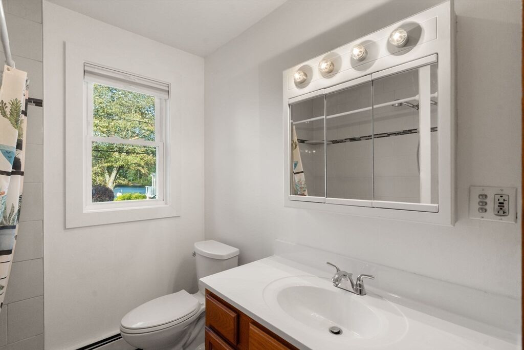 Welcome to your cozy lakeside cottage, the perfect spot for a relaxing getaway! You'll be greeted by breathtaking views of a serene private lake. With three comfy bedrooms and two lovely bathrooms, there's plenty of room for you and your loved ones to unwind. The modern, updated, open floor plan flows with the beautiful surroundings, creating your own everyday vacation. The patio and primary bed deck complement the beautiful surroundings, giving you that vacation feel every single day. Get ready to dive into lakeside living with the ability to do a boat launch on your own property! Whether you're into fishing, kayaking, jet skiing, or just hanging out by the water with a good book, this place has it all. Plus, you're just a hop away from shopping, Patriots Stadium, and fantastic golf courses. Don't miss out on this amazing chance to make this lakeside gem your own!