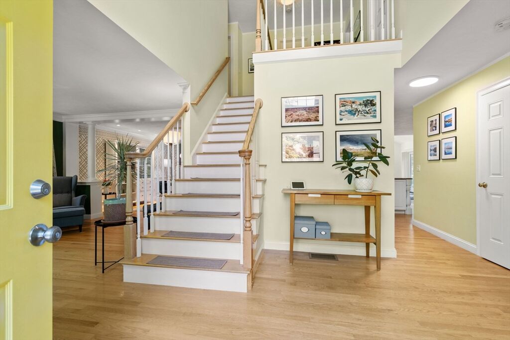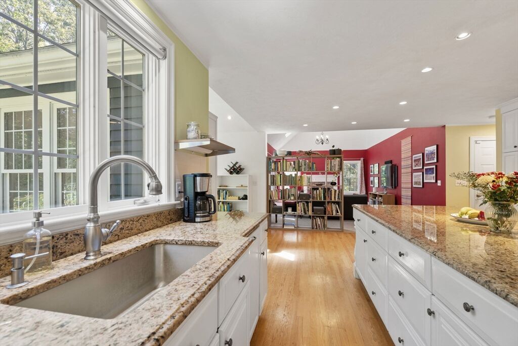 Stunning custom colonial in Wildlife Woods featuring an open floor plan and exquisite craftsmanship. Highlights include numerous recessed lights, detailed moldings, and gleaming hardwood floors. A dramatic two-story foyer leads to a spacious liv rm and elegant dining room with designer trim. First-floor library boasts a bay wndw and built-ins. At the heart is a newly updated European kitchen with white cabs, granite island, tile backsplash, Sub-Zero fridge, walk-in pantry, and sunlit breakfast room wrapped in glass. This opens to a vaulted family rm with skylights and a wood-burning fireplace. The posh primary suite offers soaring ceilings, multiple closets, spa bath, and a sitting room. Three additional bedrooms are bright and spacious. The finished LL offers many possible uses- media room, gym, an additional bdrm and a lux full bath. Outside, enjoy lush landscaping and garden space. Located near top schools, shopping, golf, Lake Boon—this home blends elegance, comfort, and nature.