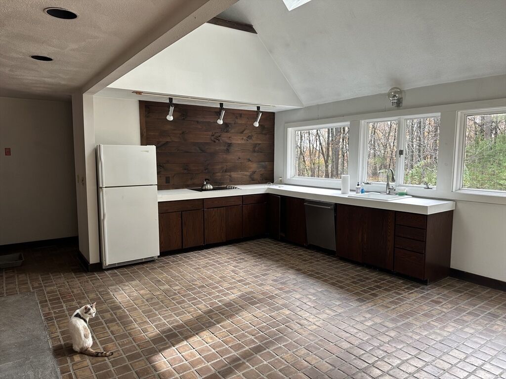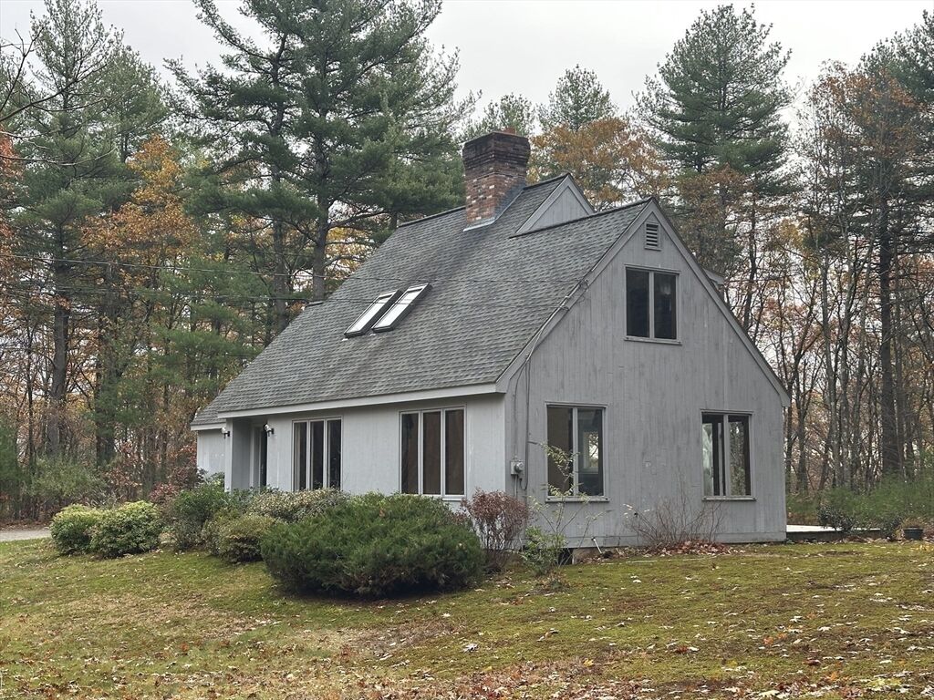 Tucked away on a peaceful, wooded 3+ acre lot, this contemporary home has architectural charm with natural surroundings. The bright layout includes open concept main level with cathedral ceilings and two sided, see through fireplace from kitchen to family room. Upstairs you'll find 3 bedrooms, balcony and full bath. Large windows invite natural light and views of the surrounding trees. This home would be perfect to live in while you update and make it your own. The beautiful town of Harvard is known for its top-rated public school system, residents-only town beach, and extensive conservation land—a perfect setting for those who appreciate natural beauty and community. Please note: home is sold as-is. Title V and water tests have passed.
