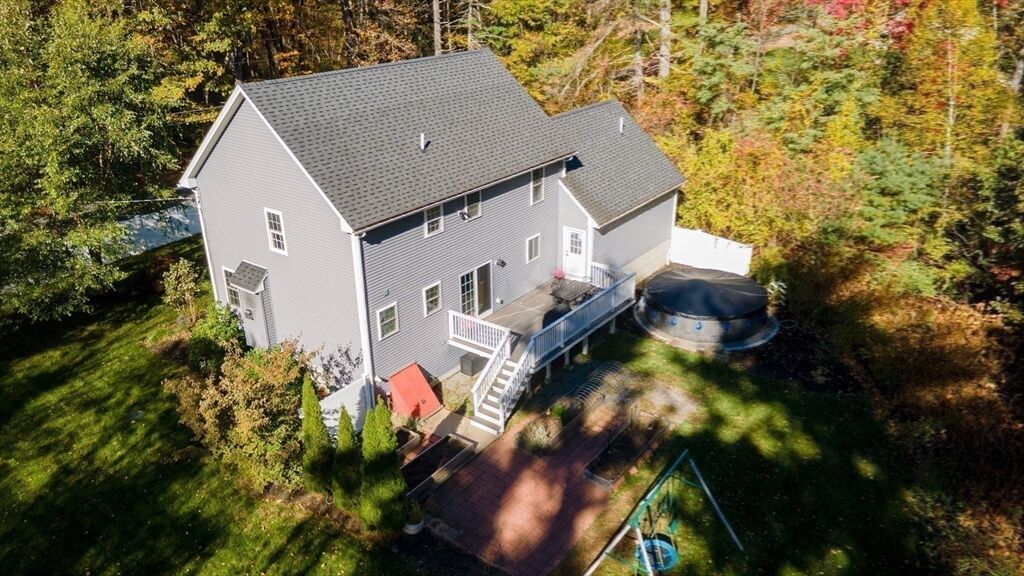 Tucked away on a quiet country road, this beautifully maintained 3-bedroom, 2.5-bath home offers privacy, charm, and convenience. Set on over 4 acres abutting conservation land, enjoy wooded trails and a gentle brook right from your backyard. Inside, the sunny living room features hardwood floors and a cozy propane fireplace. The kitchen boasts granite counters, ample cabinetry, and a gas cooktop. The back-to-front primary suite offers a bright retreat with private bath and custom walk-in closet, while two additional bedrooms feature large closets and easy access to a full bath. Relax or entertain on the expansive easy maintenance composite deck overlooking the fenced-in yard with a new irrigation system. A partially finished basement adds bonus space for a gym, office, or playroom. You will be blown away by the spaciousness of the rooms. Plenty of space for activities both inside and out! New wall mounted boiler. Energy efficient home. Close to area amenities and routes.