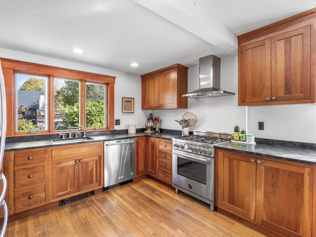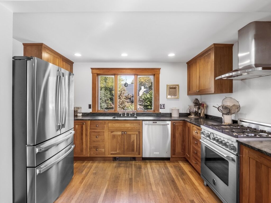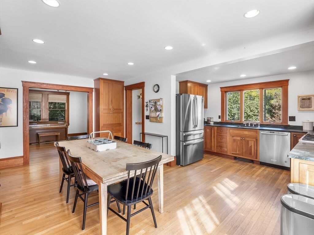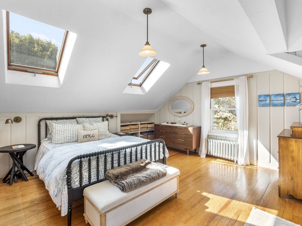 Boaters delight! 346 Merrimac offers the rare charm of an Arts and Crafts-style home abutting the Newburyport Boat Basin, and is a short walk to several other marinas. The Merrimack in your backyard isn’t the home’s only perk. Downtown Newburyport is a short walk away, with 30+ restaurants, shops, rail trails, and parks. Inside the house, there are five bedrooms—four on the second floor and one on the third complete with river views and a large walk-in ready to be converted to an in-suite bath, office or custom closet. The floor plan is flexible, with a large eat-in kitchen and a formal dining room that can double as an office or playroom. A generous living room, laundry room, entry hall, mudroom and walk-out basement round out the inside. Out back, a large deck overlooks a fenced-in yard, while the sunny side yard is home to a bustling vegetable garden. Dine under the stars, adventure in town, bike to Plum Island or boat on the Merrimack—this inviting home puts it all in easy reach.
