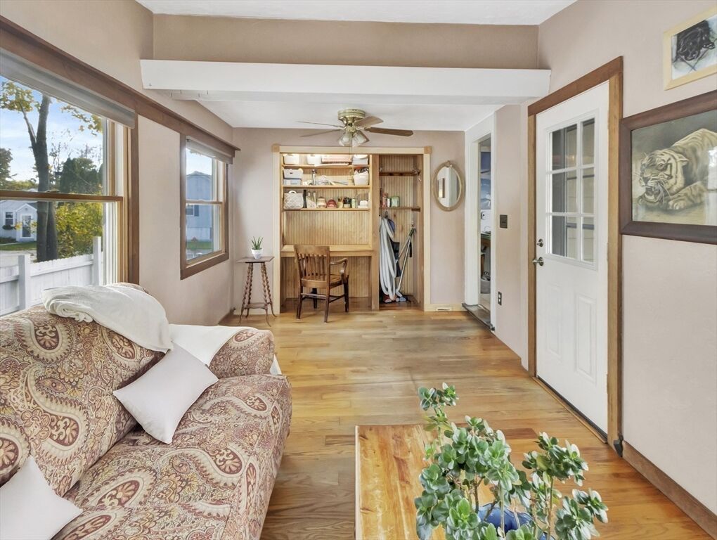 Enjoy the best of both worlds with this charming 4 Bdrm 1.5 Bth Colonial w/GARAGE, ideally located halfway between Nantasket Beach and the bay’s stunning sunsets and boating activity. This beautiful home welcomes you with an inviting front porch and features a LR with a cozy fireplace open to the dining room perfect for entertaining. The stainless eat-in kitchen with gorgeous backsplash is framed by a pantry on one side and a family rm with office area on the other, all accented by gleaming hdwd flrs throughout. The 1st flr bdrm has beautiful vaulted beamed ceilings. Upstairs, the spacious primary bdrm offers 2 W-I closets for storage, while the 2nd & 3rd bdrms are generous in size. An attic fan keeps the home comfortable on warm summer evenings. The LL incl laundry, high ceilings, & plenty of storage. Outdoors, an oversized bkyard & patio provide the perfect setting for gatherings and celebrations. Lots of parking. This home is ready to be a summer retreat or year-round haven!