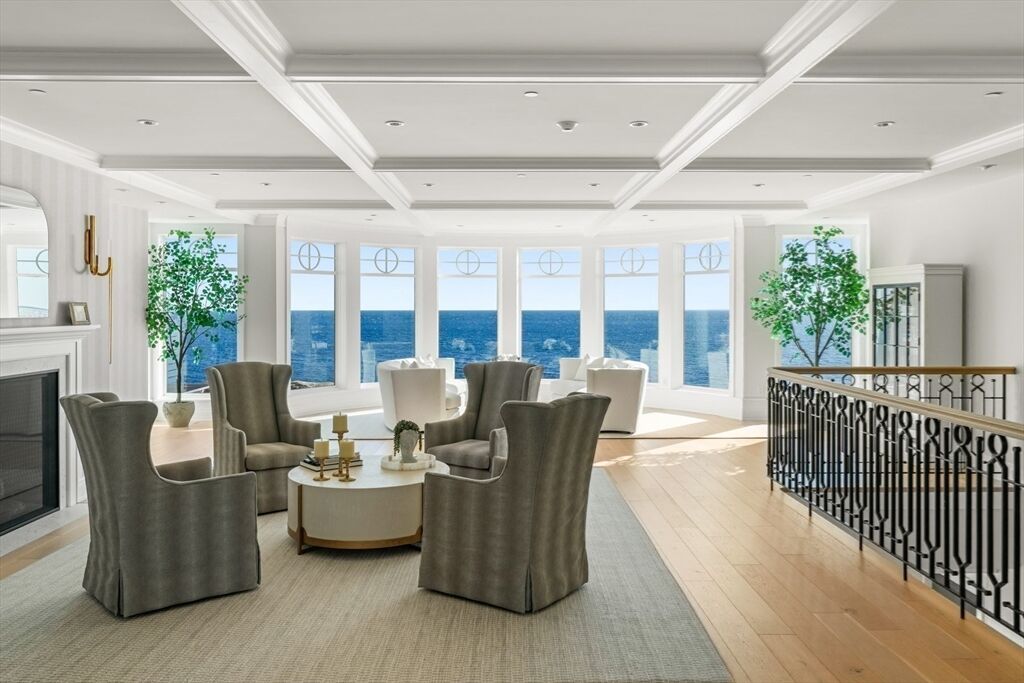Enjoy oceanfront luxury living at White Court, an exclusive 55+ oceanfront community just minutes from Boston. Perched above the surf on a storied 6+ acre estate, with 350 feet of shoreline, and once the summer estate of President Calvin Coolidge, this exquisite 3-bed, 3.5-bath residence offers single-level living with soaring 10-foot ceilings, sunlit interiors, and breathtaking panoramic ocean views. Your spacious private balcony becomes a front-row seat to the ever-changing sea. Thoughtful upgrades include electric shades, crystal chandeliers, custom built-ins, a lavish walk-in closet, water filtration, and a third bedroom with a discreet custom Murphy bed. Enjoy White Court’s resort-style amenities: 3 Heated Garage Spaces with Elevator, Private Storage, Fitness Center, beautifully landscaped grounds, and curated oceanfront lounges. The seasonal Pool is perfect for visits with grandchildren and summer gatherings, completing a lifestyle of luxury, ease, and oceanfront serenity.