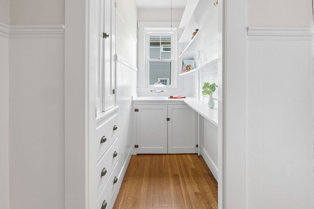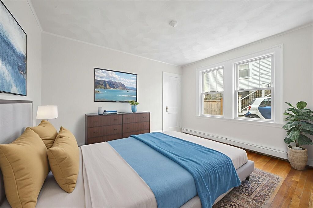 Enjoy easy one-level living in this charming, sun-filled first-flr condo in the prime Jason Heights Location! The spacious layout offers six delightful rooms, including two generous size bedrooms, a formal dining room, a living room with a cozy fireplace & window seat, an oversized sunroom/home office, an eat in kitchen featuring quartz counters, gas cooking, & a full bath. Period details abound from the built-in China cabinet & chair rail to crown moldings, hardwood flrs & a rare walk-in pantry. A bonus enclosed back porch provides extra flexibility, while the exclusive-use basement offers lots of storage. Completing this gem are two parking spaces which includes a garage spot, an enchanting shared outdoor area-perfect for relaxing or entertaining, replacement windows & easy access to public transportation, Mass Ave, Minuteman Bike Trail, Menotomy Rocks Park, Arlington Center & schools. A warm blend of character, comfort, & convenience awaits! Such a wonderful opportunity!