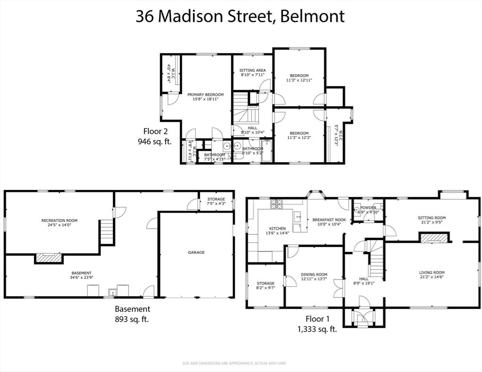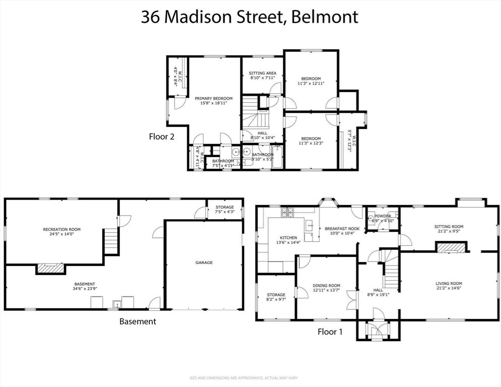 Rooms Information for 36 Madison St Belmont, MA 02478 |