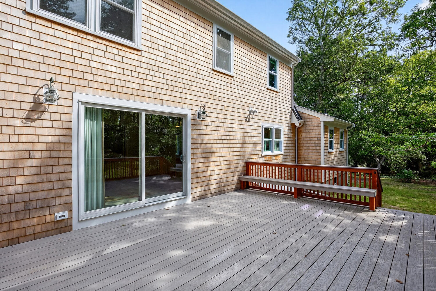 Discover peace and privacy in this South Orleans retreat. On nearly an acre, this property is completely surrounded by hundreds of acres of conservation land--yet is just minutes from village shops, bays, beaches, and all Orleans has to offer.The home welcomes you with a sun-filled, open-concept first floor where the kitchen, dining, and living areas create the perfect gathering space. A first-floor bedroom, and separate half bath with laundry, and versatile mudroom add convenience and flexibility. Upstairs, you will find generous sized primary bedroom as well as two additional bedrooms and a shared full bath. The lower level with high ceilings offers potential to expand your living area.Thoughtful 2024 upgrades enhance comfort and peace of mind, including new first-floor flooring (living room, kitchen, mudroom and bath), new dishwasher, new roof (soffit and ridge vent), repointed chimney, an oversized deck ideal for outdoor entertaining, and new siding.Whether you're seeking a year-round residence, a Cape Cod getaway, or a home with room to grow, this property combines natural beauty, privacy, and many updates. Seller welcomes offers with requests for buyer concessions.