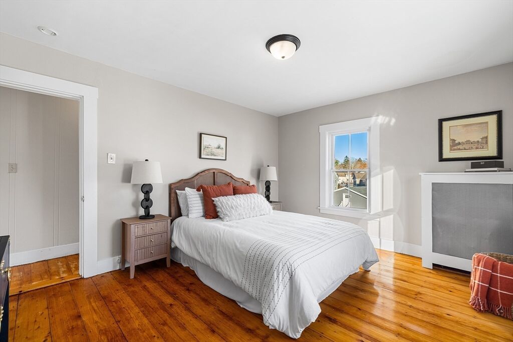 A sun filled New England colonial style home offering 3 bedrooms, 1.5 baths & a private outdoor oasis a short distance from Boston. Architectural detail such as high ceiilings, window moldings & french doors found only in a home of this era. Main level welcomes you with a charming 3 season porch. A modern kitchen with stone counters & stainless steel appliances. Open concept first floor with nice flow including a half bath. The 2nd floor is adorned with 2 corner bedrooms, a very large full bath including soaking tub & separate shower. Extra bonus is walk up attic with additional bedroom & storage. Amenities are gas heating & cooking, original wide plank hardwood floors, patio & off street parking for 4 cars. Steps to downtown, bus & super close to I-95! Absolutely move in ready.