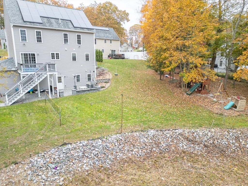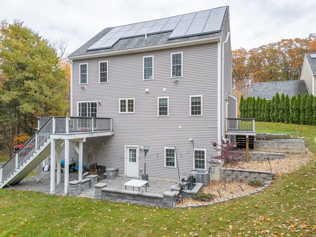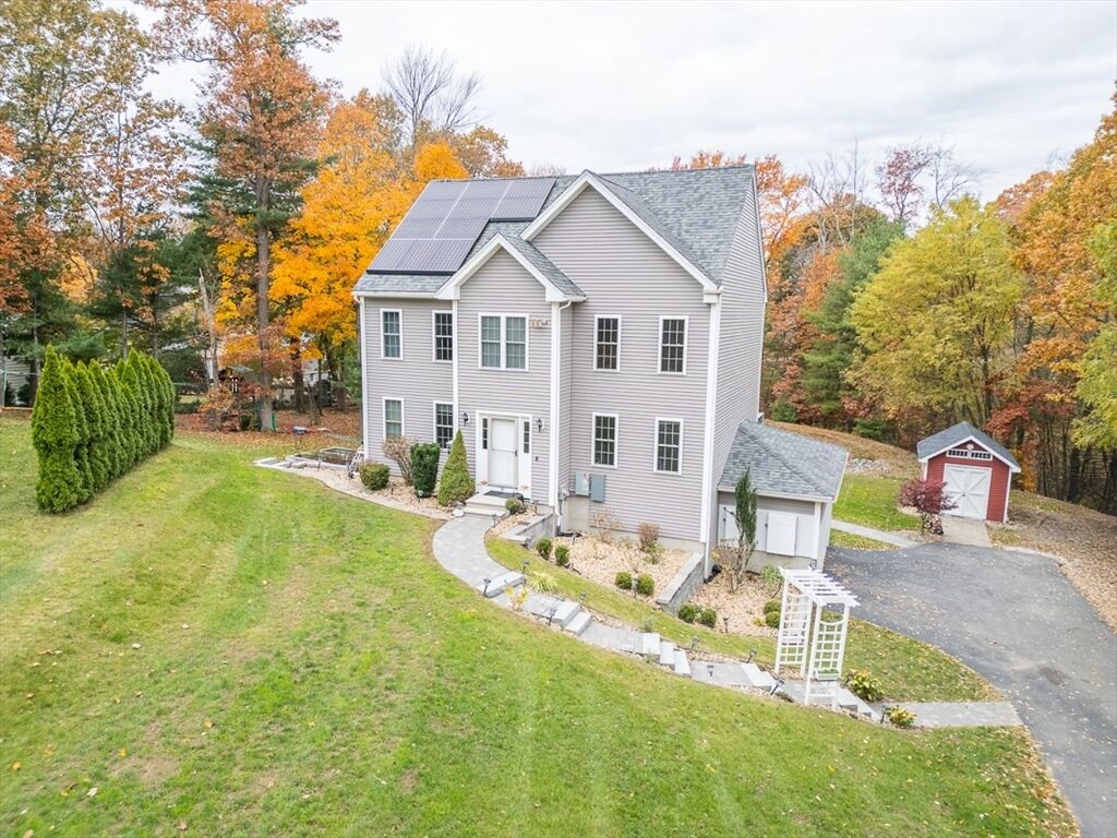 Built in 2015, this stunning set-back 4-bedroom home w/ beautiful curb appeal offers timeless style & thoughtful updates. Dark hardwood floors flow through the main level, featuring a welcoming foyer, dining room, & living room. The eat-in kitchen showcases rich cabinetry, a center island, white tile backsplash, pantry & brand-new appliances (except range & microwave), opening to a back deck. Upstairs, the primary suite features a walk-in closet & ensuite w/ dual vanities, joined by 3 additional bedrooms & a full bath. The walk-out basement adds 400+ sq ft of finished living space w/ a family room, full bath, & garage access. Enjoy a serene outdoor retreat w/ stone walls, a beautiful patio sit-out area, & a spacious yard. Energy-efficient! 11.05 KW owned solar system under the SREC II program has generated passive income since 2019 + 3 Tesla batteries. Attic access adds bonus storage! Not one to miss! Showings begin at our Open Houses Sat 11/15 & Sun 11/16 from 11–1!