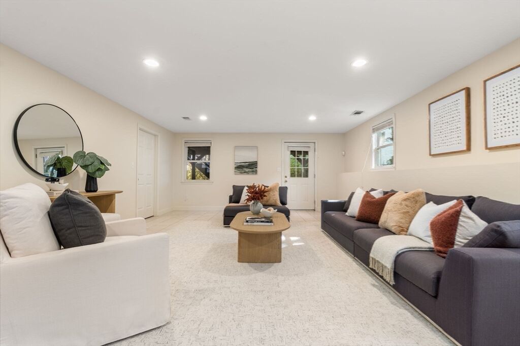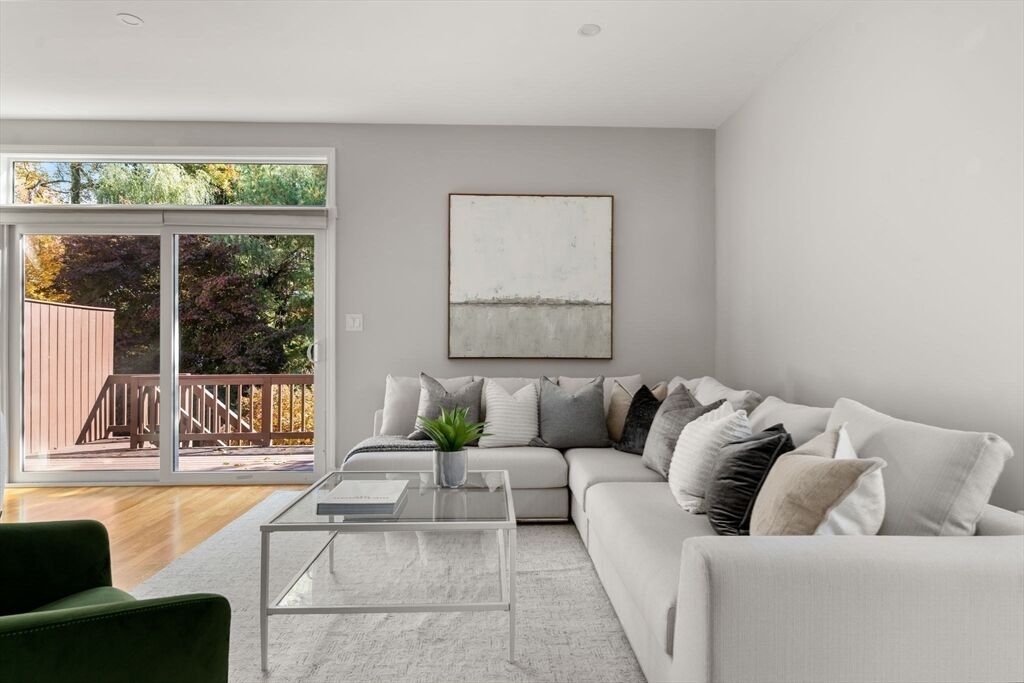 Single-family alternative Contemporary home. Private entrance and private backyard. Corner multi-level townhouse, on a sunny tree-lined street on a dead-end cul-de-sac. This ultra-sunny home has 3 bedrooms, 2 full and 2 half baths. High ceilings as well as a cathedral ceiling with skylight. There is recessed lighting throughout, as well as hardwood flooring throughout. Features a spectacular 2024 kitchen with very high-end finishes and appliances. The home has a very spacious open living, dining floor plan with direct access to glass sliders to the large private deck overlooking a garden-like backyard. There is a bright finished lower level, perfect as a family living area, with a bath, and direct access to the backyard. There is an attached 2-car garage with an electric car charger and direct entry to the main level of the home. Minutes to The Street, The Square, Chestnut Hill Mall, shopping, restaurants, movie, school.....