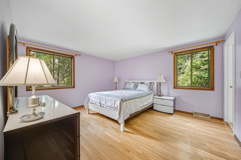This well-maintained Hopkinton single family multi-split style home is located close to major highways of I-90, I-495 and RT-9, yet has the privacy to bring an oasis of serenity with New England charm. In an outstanding school district and on a 1.53 acre lot, it offers 3 bedrooms + den, 1.5 baths, 1 car garage w/ 5+ off street parking. The living and dining rooms have soaring high ceilings w/ an oversized fireplace, and sliding glass doors leading to the huge deck w/ new natural gas grill for outdoor cooking, making it a perfect place for entertainment. Lower level with 2nd gas fireplace is partially finished for recreational use, including a walkout entrance, half bath with laundry area and the utility room comes with extra space for storage or a workshop. There is a private front yard and flat backyard with the potential to expand the house if desired. Besides the Hopkinton State Park, this house also enjoys less than 5 mins for residents to Sandy Beach and many town trails to enjoy.