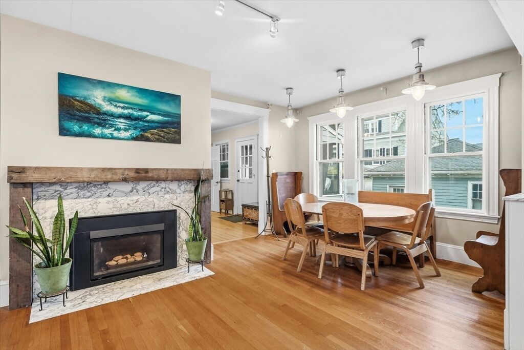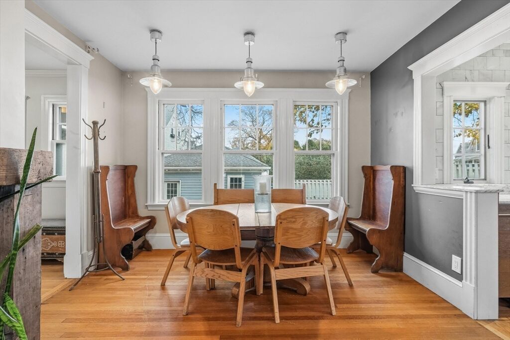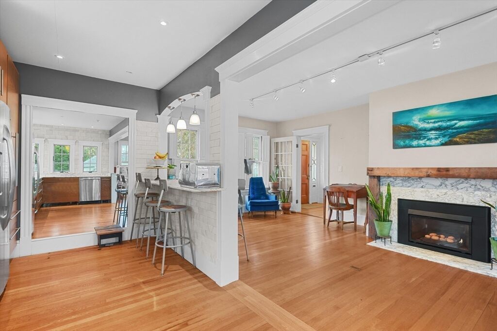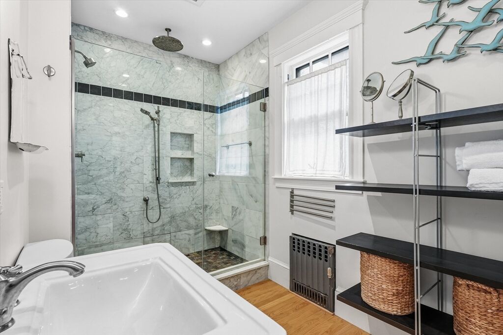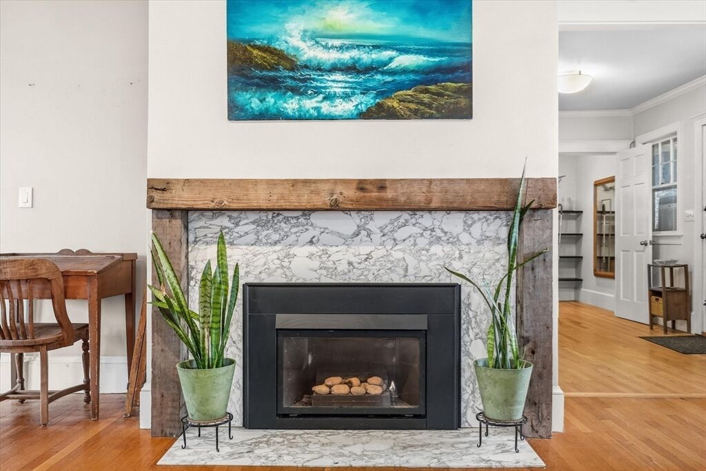 This classic Four Square Craftsman style Colonial combines period features and modern living into this beautiful residence. Welcome inside to discover timeless details such as decorative windows, a French door, elegant millwork, hardwood flooring & crown molding throughout providing an opportunity to own a classic home with all the modern comforts such as the updated beautiful spa like bathroom and gourmet custom-built, open kitchen with a gas fireplace. The inviting living, kitchen, dining, bath, mudroom & sunporch are located on the first floor and handcrafted stairway leading to the 2nd- featuring 4 bedrooms, full bath & walk-up attic offering a finished, heated bonus room or storage The basement also offers a finished bonus room. The exterior features a deck, patio & intimate fenced yard, 2 car garage & 2 car driveway parking. Ideally located in South Salem near the College and MBTA. Very close to beaches or Forest River/Bike trail. Peek at ocean views from the back of property
